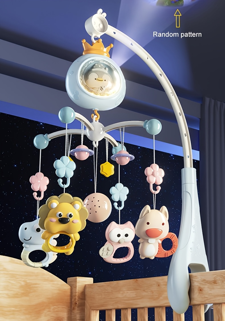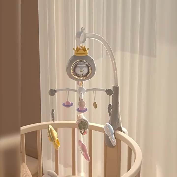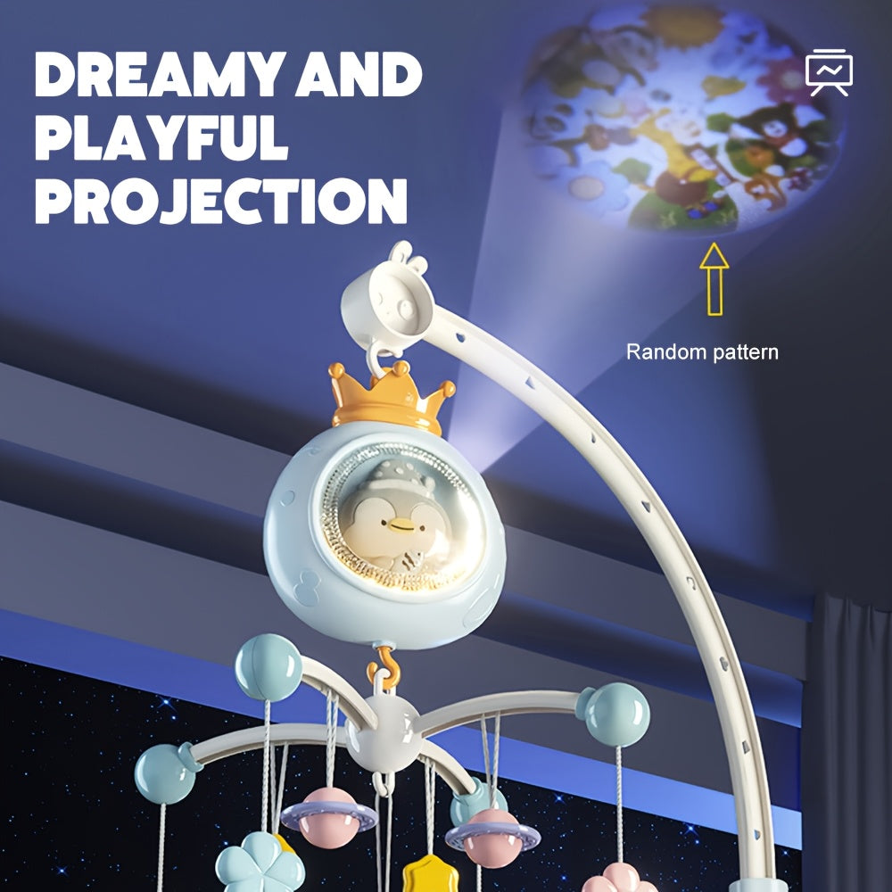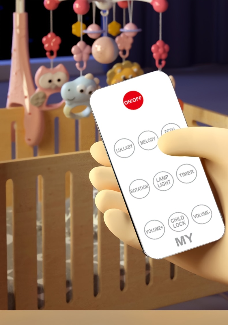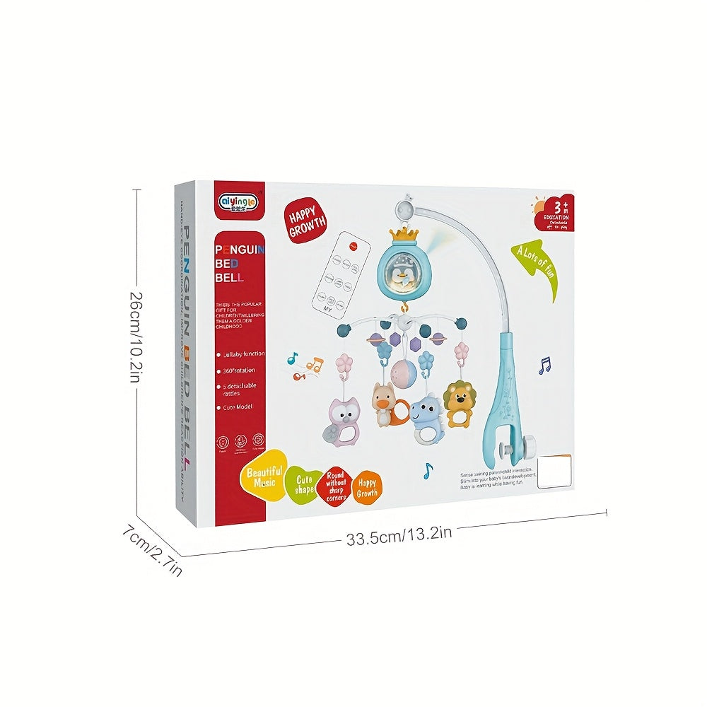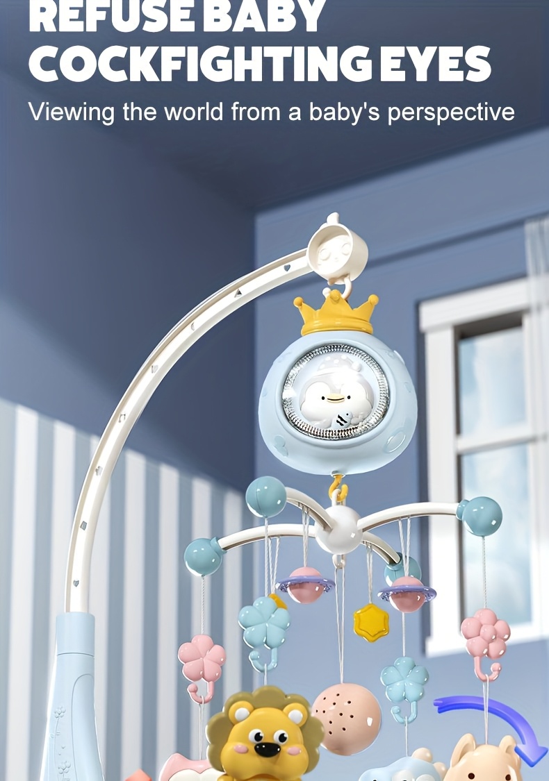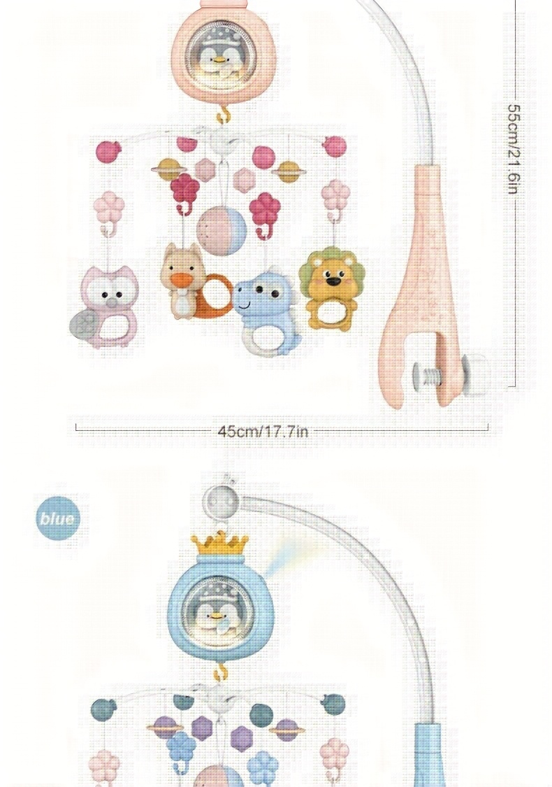 Baby Musical Crib Mobile with 150 Lullabies & Remote Control, Rotating Bed Hanging Toy with Soothing Lights & 150 Melodies, Bedside Mobile for 0-36 Months, Pink/Gray/Blue (Easy Install, Durable Plastic)