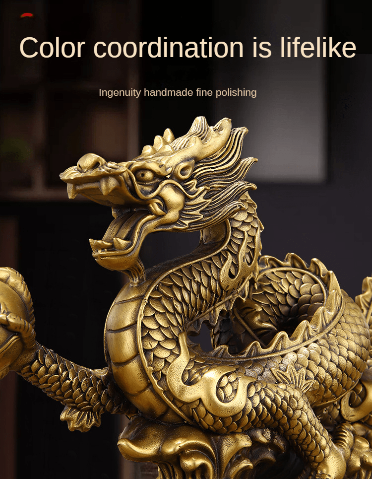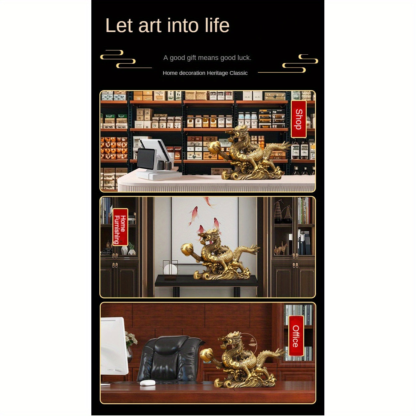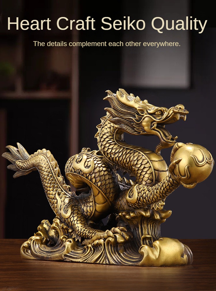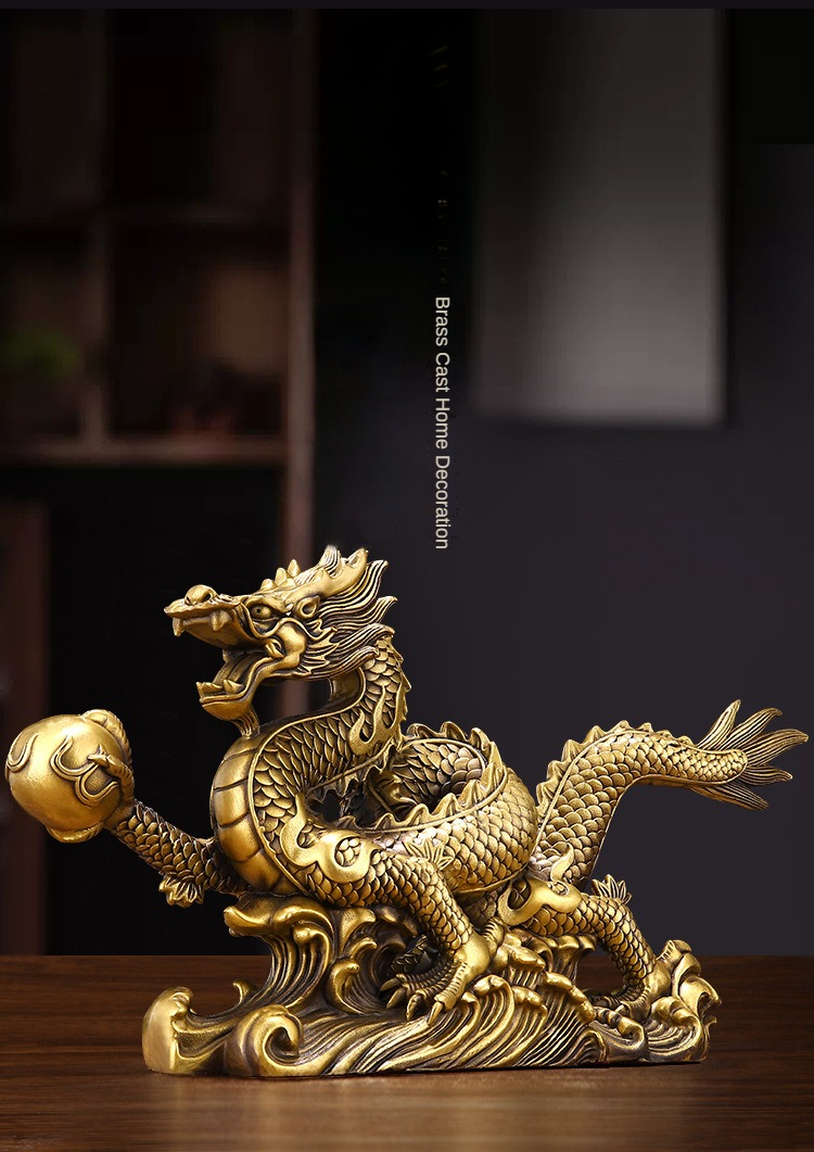 Brass Dragon Golden Statue, Small Zodiac Ornaments, Suitable for Home and Office Decor, Chinese Style Accessories, Office Desk Decorations, Opening Ceremony Zodiac Dragon Bronzeware