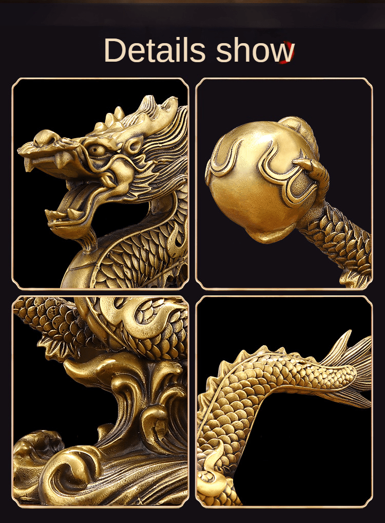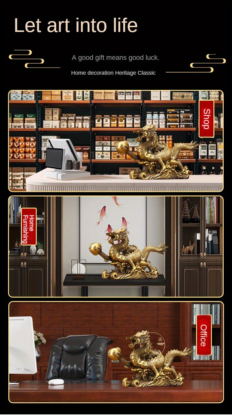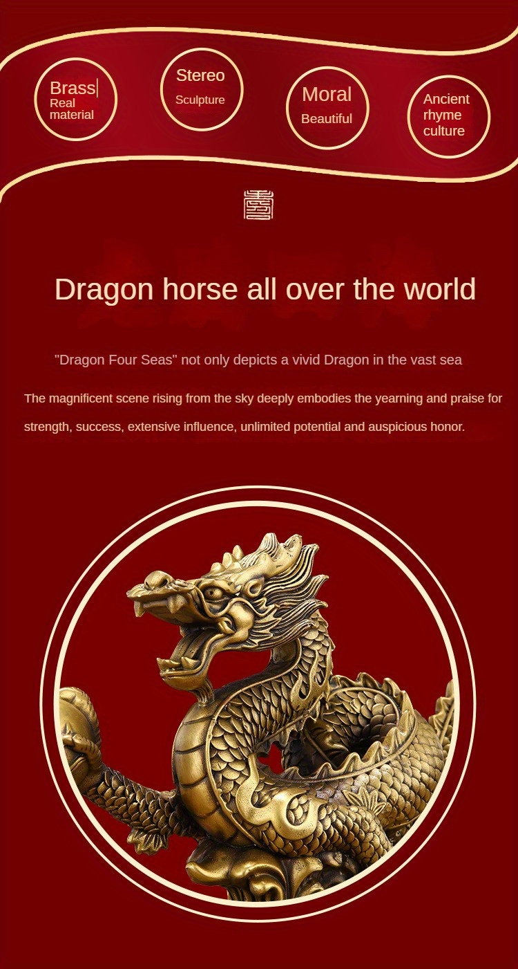 Brass Dragon Golden Statue, Small Zodiac Ornaments, Suitable for Home and Office Decor, Chinese Style Accessories, Office Desk Decorations, Opening Ceremony Zodiac Dragon Bronzeware
