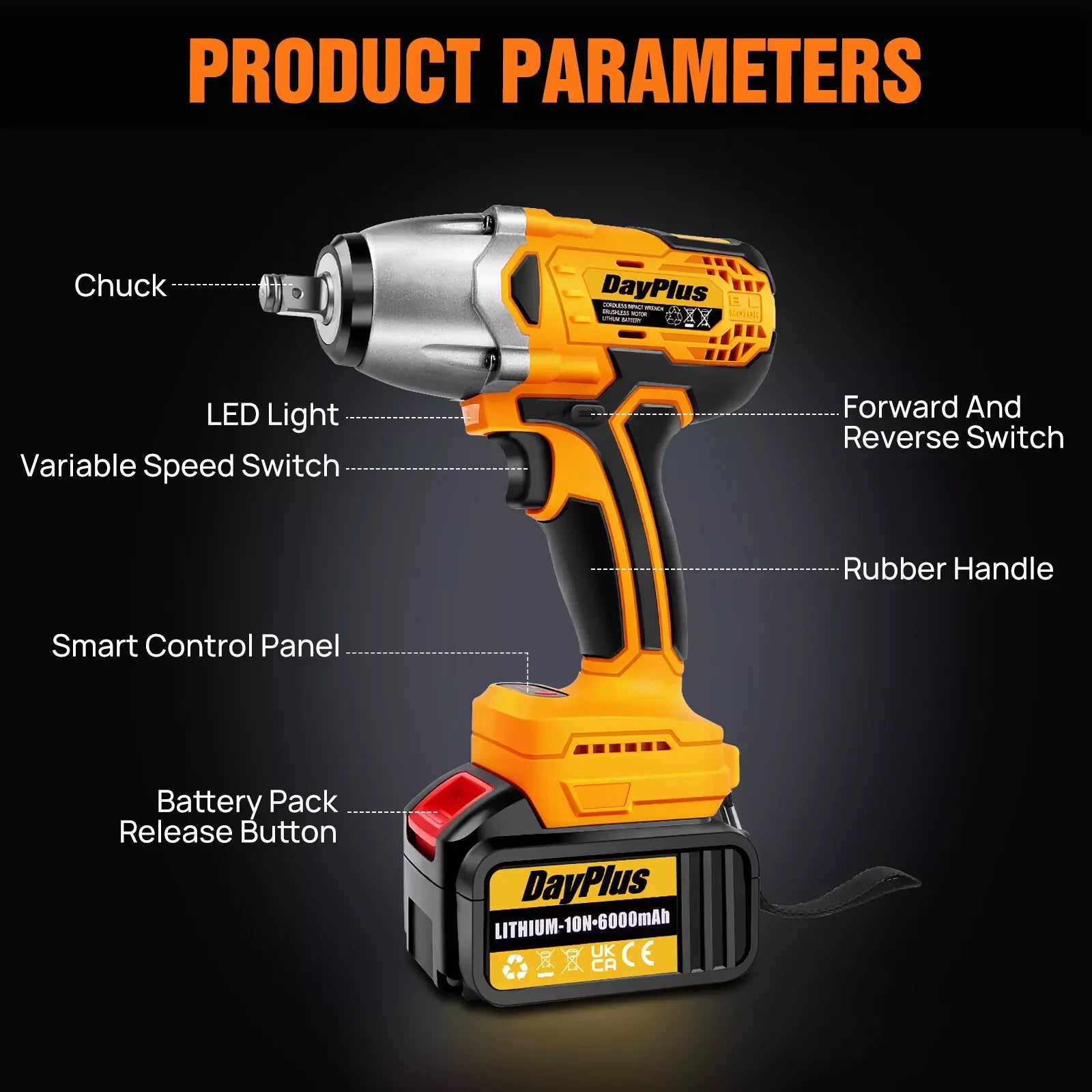 ✅【6000mah Lithium Battery & Cradle Charger】We know that the battery life of the cordless impact gun is your most important concern. Our Rechargeable Compact Wrench is equipped with 6000mah Battery and fast charger. Compared with other 2.0Ah battery, it can enjoy more than 50% of the battery life and keep the wrench running continuously. You don't have to charge the battery frequently anymore, Get our battery powered impact gun, get more efficiency out of your work.