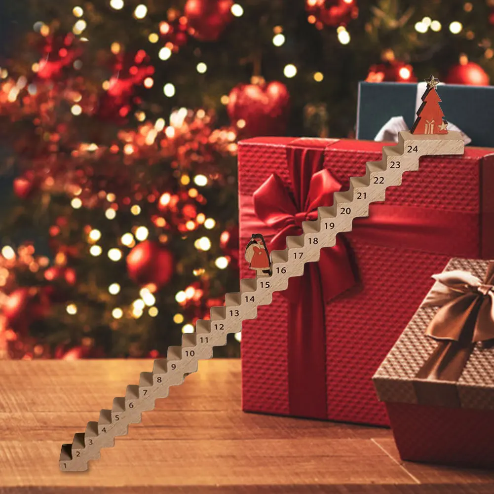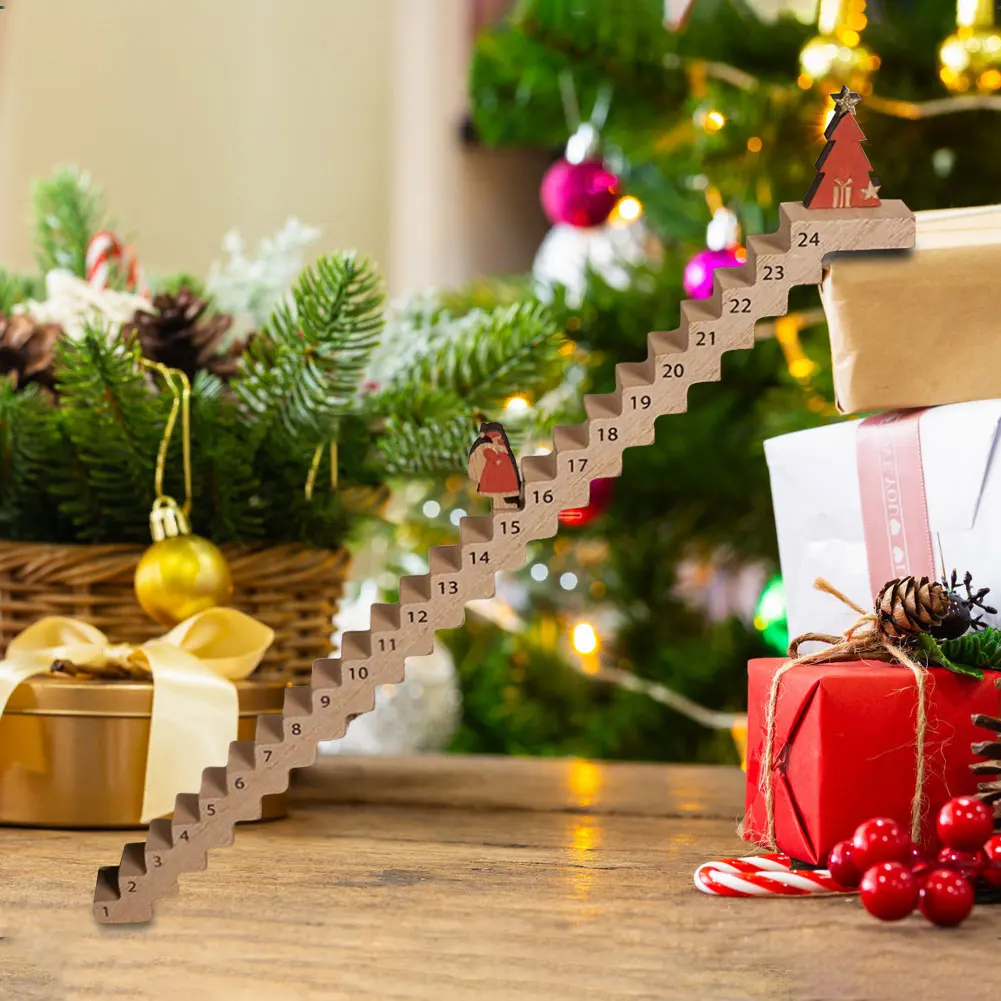 Christmas Advent Calendar 2024 Tabletop Wooden Ornament Santa Claus Climbing Stairs Calendar 24 Days Xmas Countdown Calendar