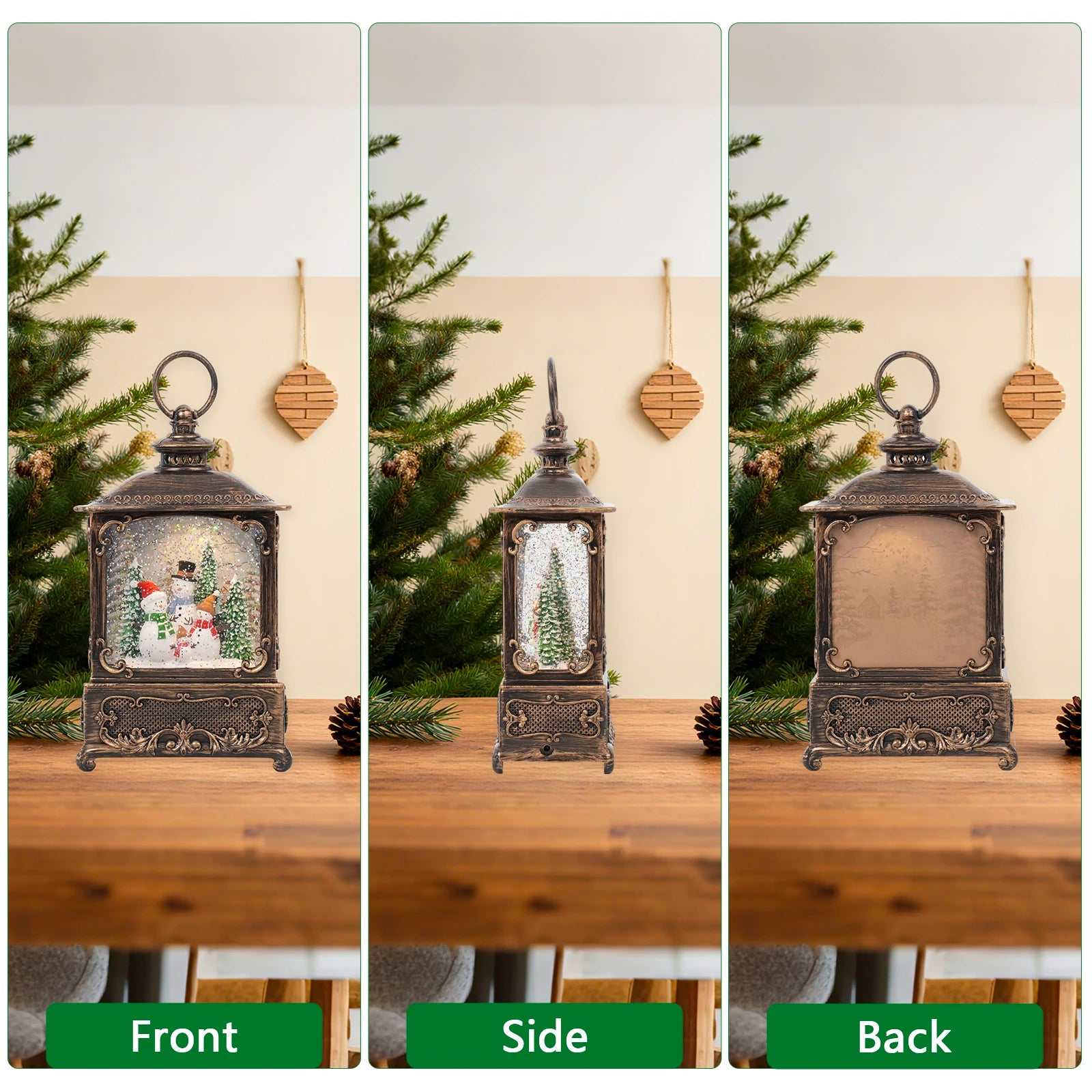 Christmas Music Snow Globe Lantern with LED Lights & Falling Snowflakes, Holiday Melodies and Warm White Glow for Christmas Decorations and Gifts