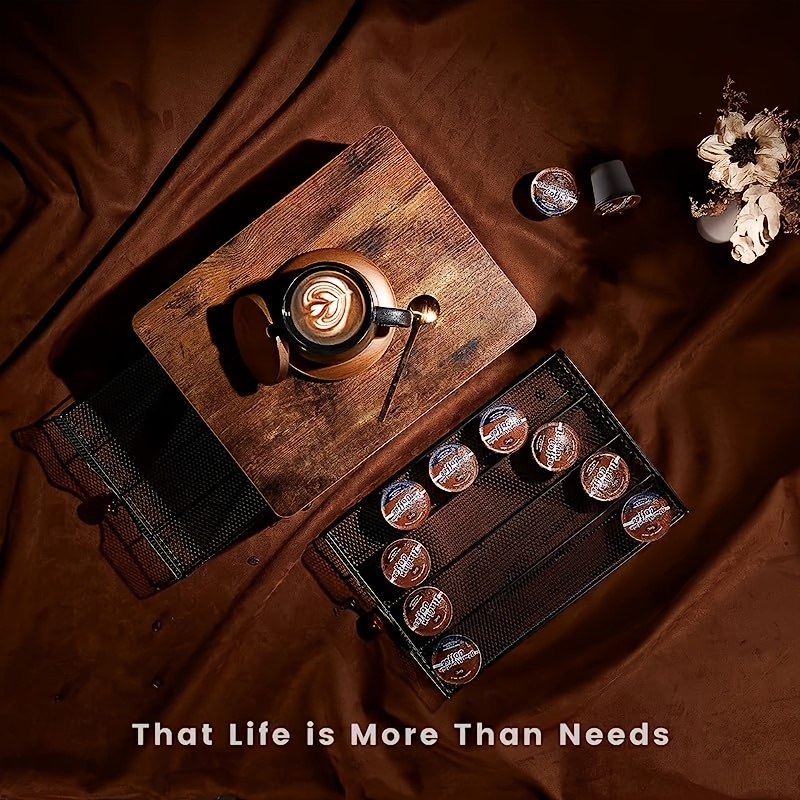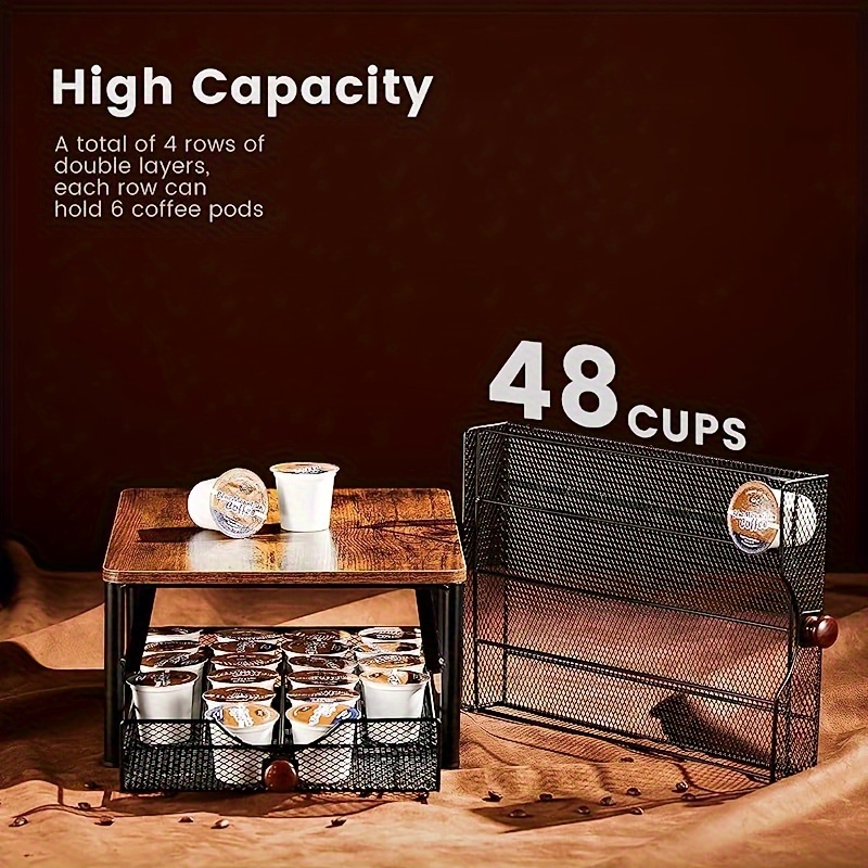 Coffee racks,Black Wood and Iron K-Cup Holder with Double Storage Drawers, Coffee Station Organizer for Capsule Boxes