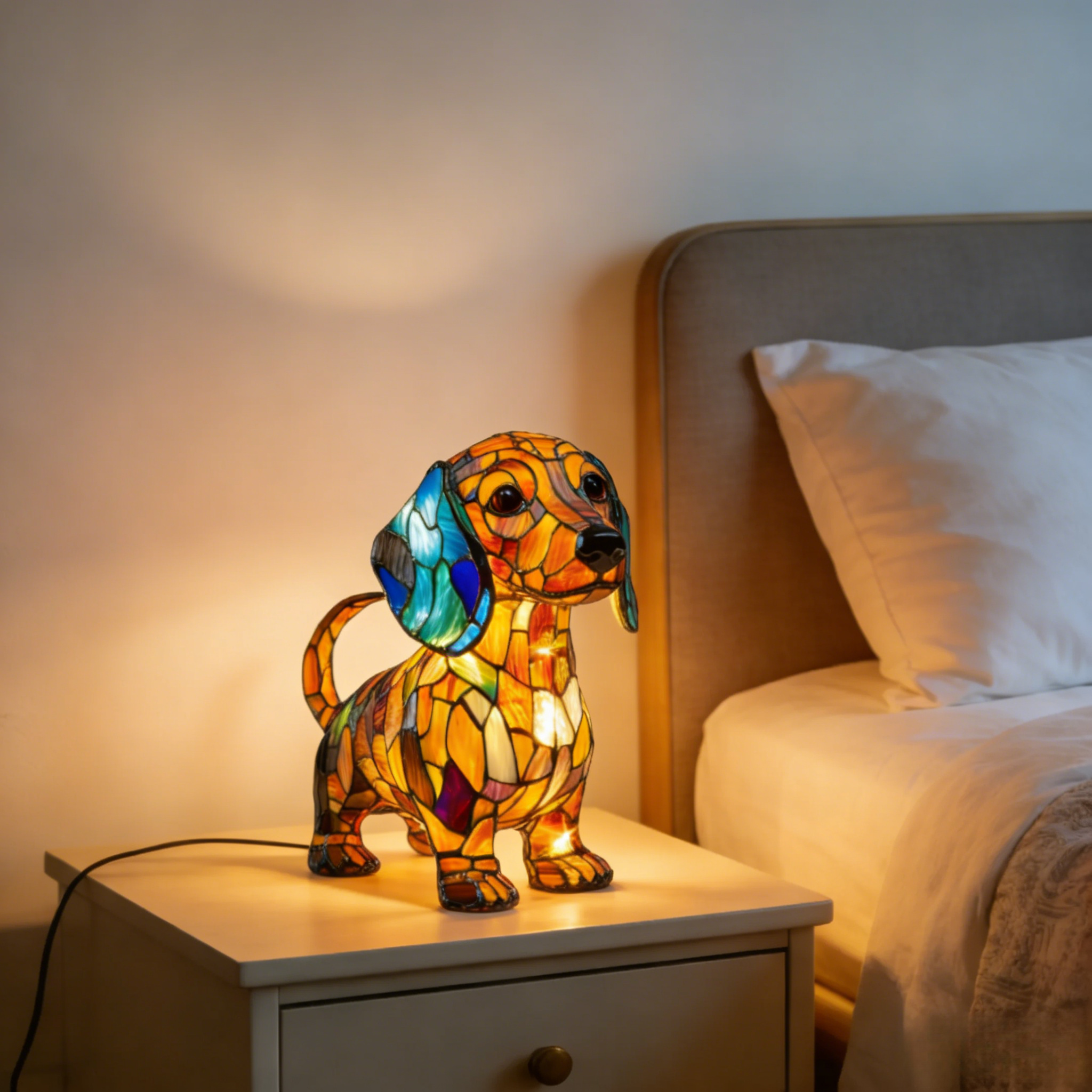 Cute Dachshund Night Light, LED Night Light, Stained Style Decoration, Unique Retro Home Decor, Designed for Dog Lovers and Fans, Room Lighting, Cozy Atmosphere, Cute Shape, High-Quality Surface Treatment, Animal Theme Orname