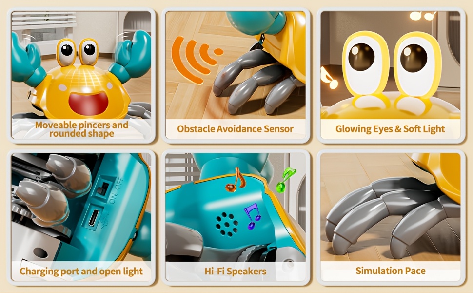 Dancing Crab Toy with Music & Lights - Interactive Crawling Crab for Kids, USB Rechargeable, Vibrant Colors, Perfect Birthday Gift for Girls & Boys, Interactive Playtime, Playful Design, Smooth Movement
