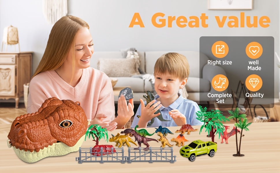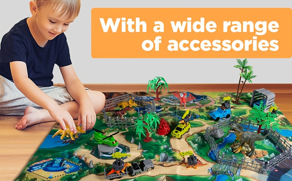 Dinosaur Toys For Kids, 49pcs Dinosaurs Figures with Airplane & Trees & Truck Playset To Create Dinosaur Worlds, Educational Dolls For Boys And Girls, Ideal Halloween & Christmas Gifts