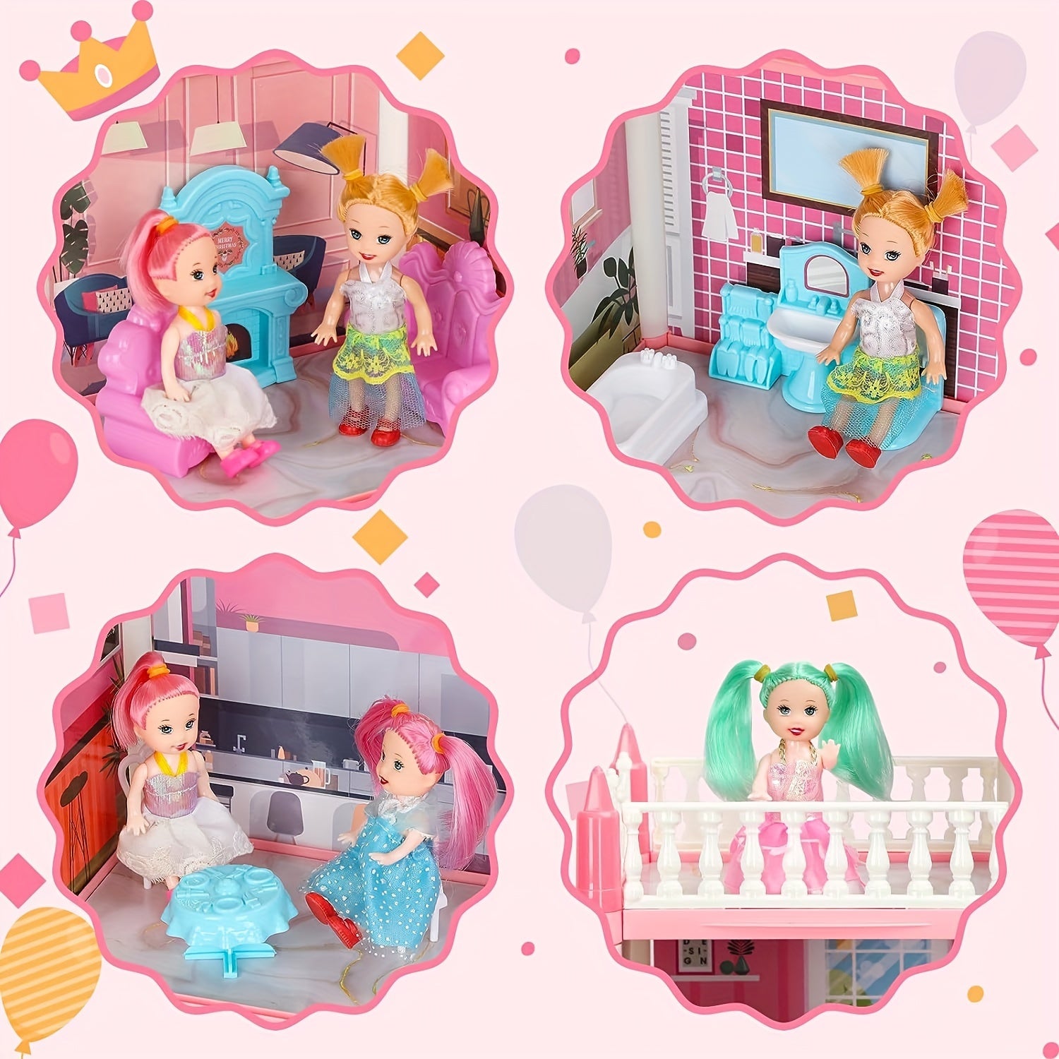 Doll House, Dollhouse for Girls Pretend-Play DIY Dollhouse Kit - 4-Story 11 Rooms Playhouse with 4 Dolls Toy Figures, Furniture And Accessories Set Gift Toy for Kids Ages 3 4 5 6 7 8+