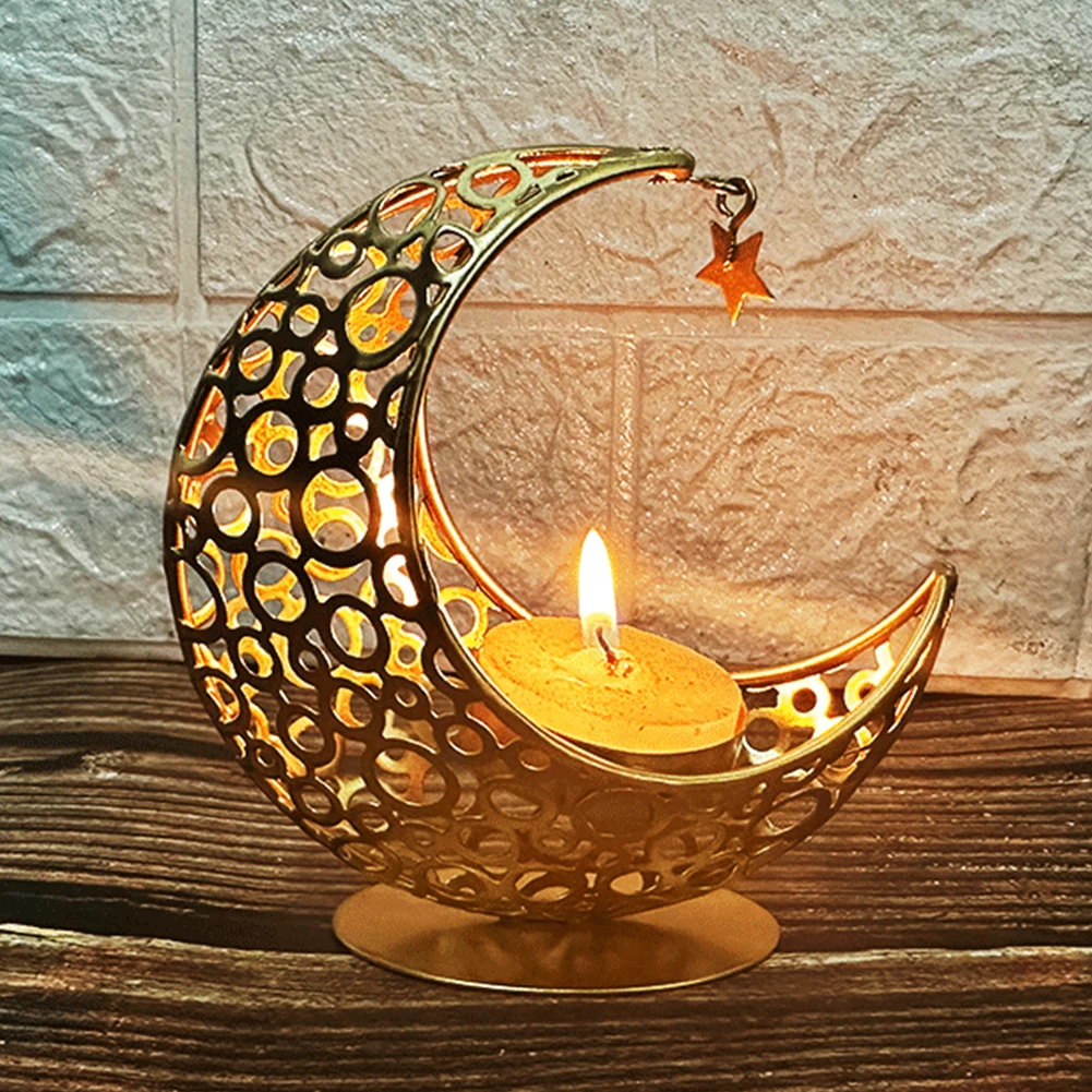 Eid Mubarak Candle Holder Metal Moon Candle Holder Home Islamic Muslim Party Decor Ramadan Tea Light Holder Ramadan Decoration Ramadan Candlestick Holder Eid Mubarak Table Decor for Eid Al Adha Gifts