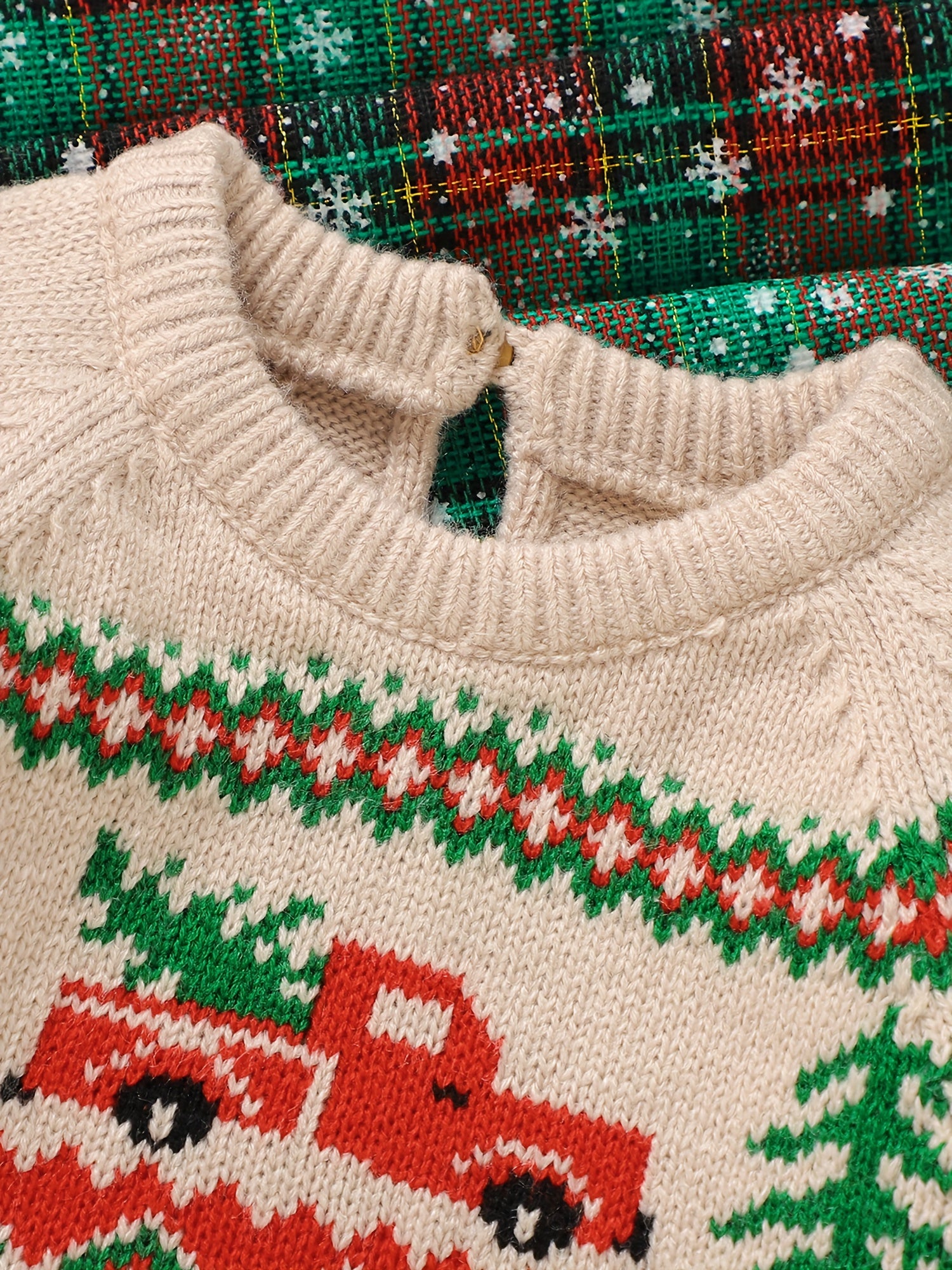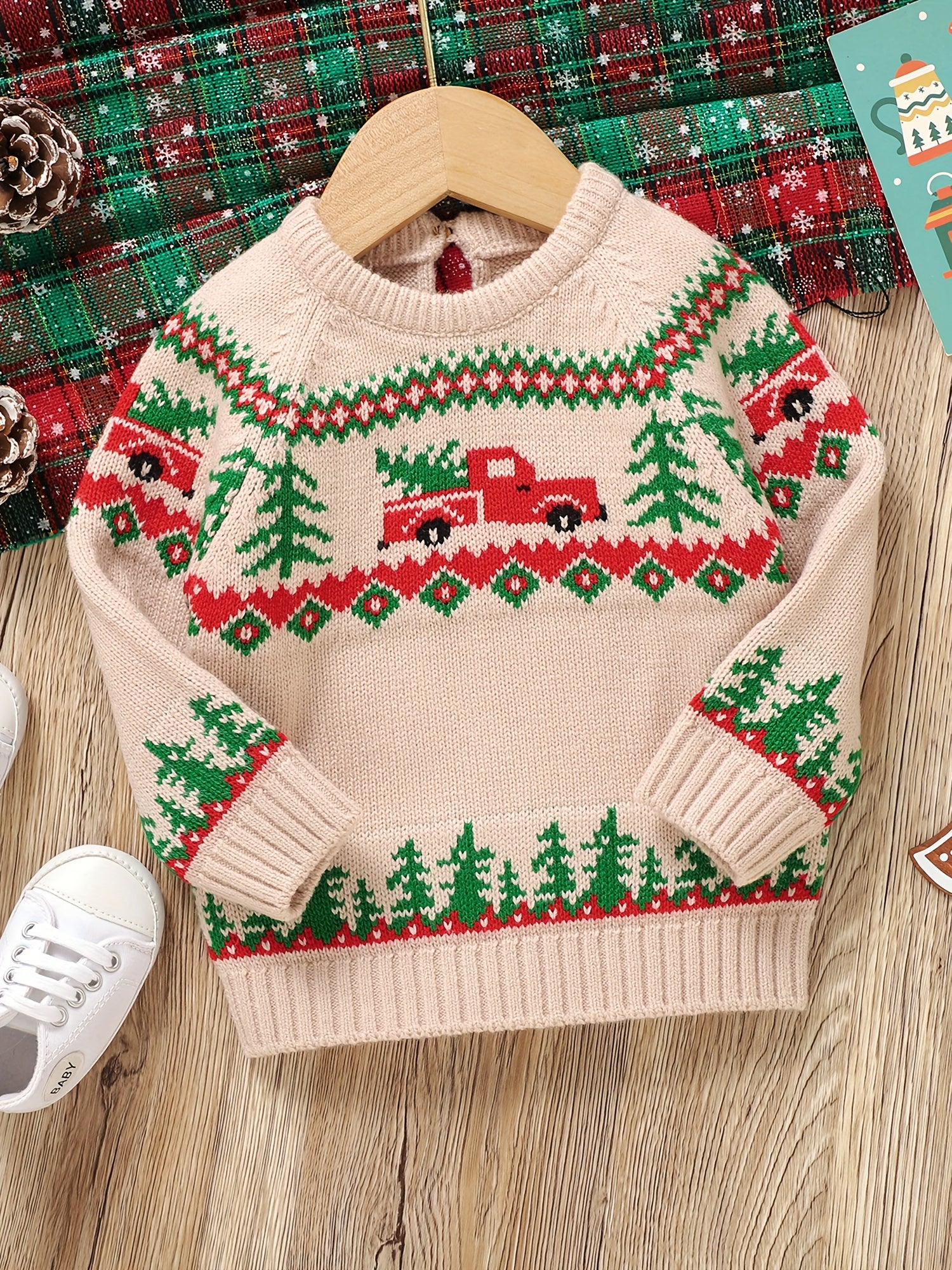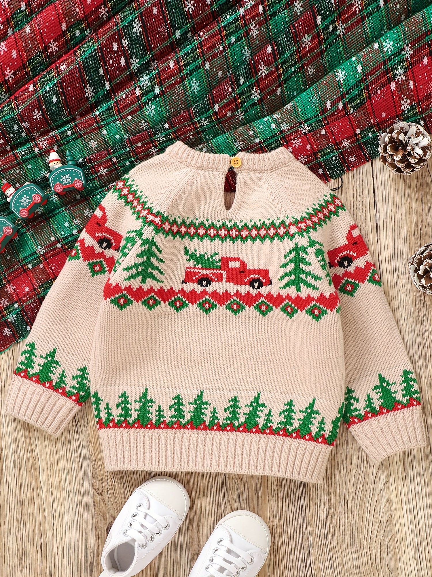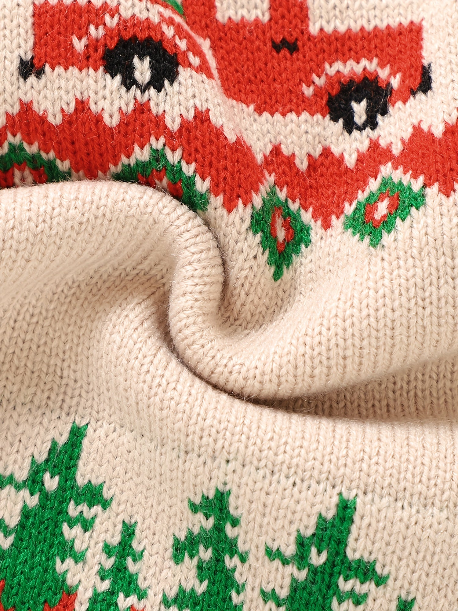 ESZNGD & Christmas Sweater - Red Truck & Reindeer Print Pullover, Soft Long Sleeve Crewneck Winter Sweater with Truck Driver Theme, Cozy Loose Fit for (Unisex Holiday Outfit)