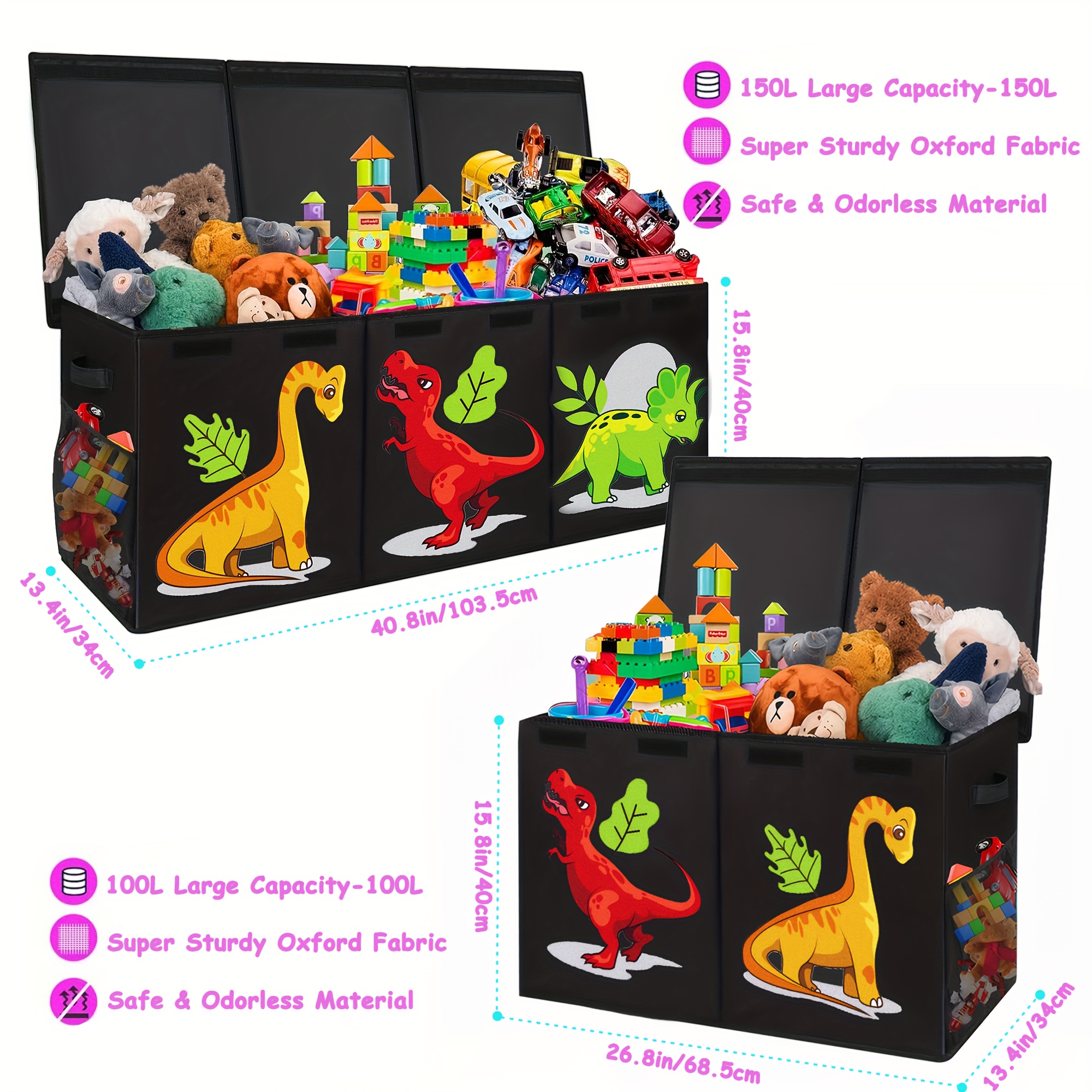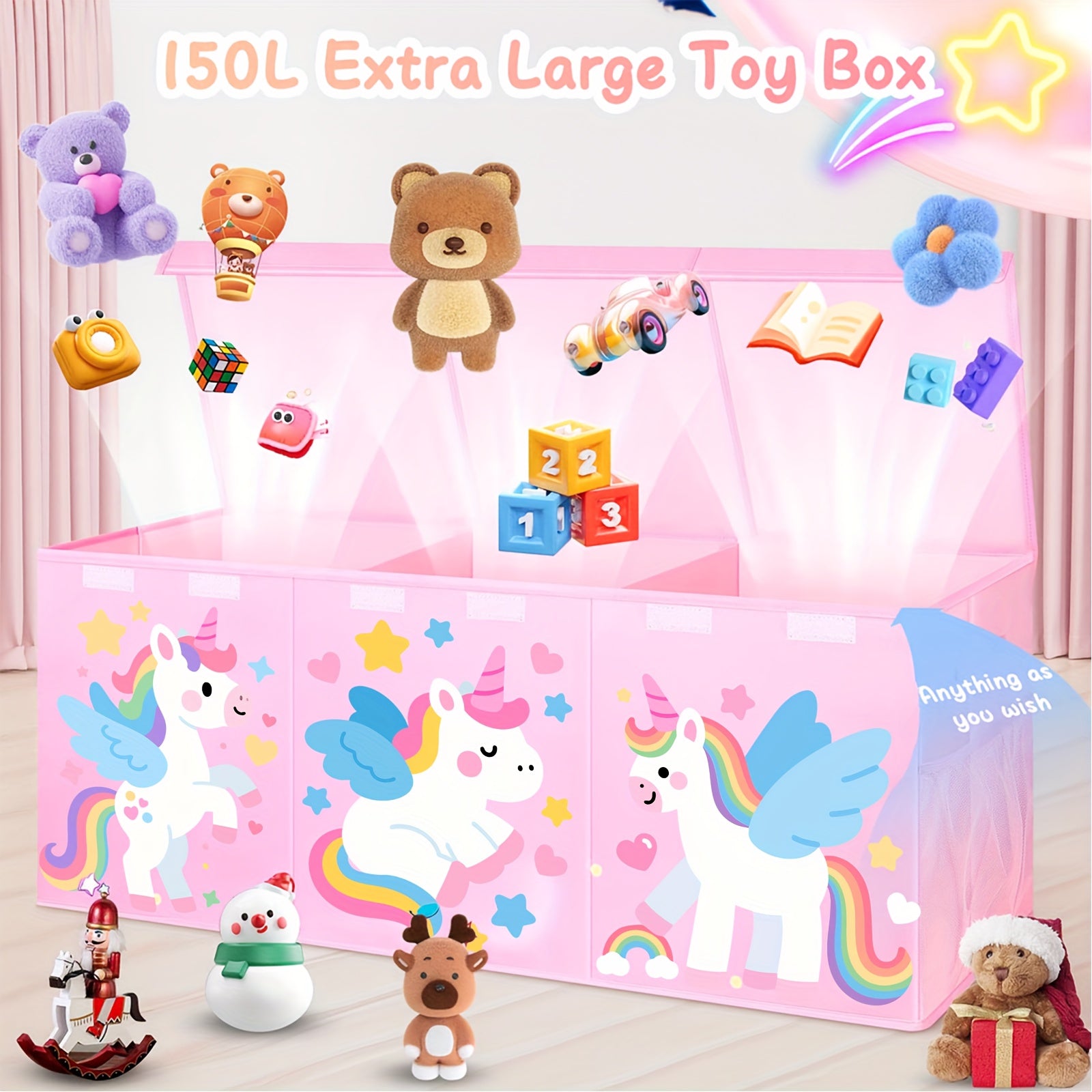 Extra Large Collapsible Toy Box with Lids - Sturdy Storage Organizer for Toys, Black Pink Chest Bin for 14+ Boys & Girls, Perfect for Playroom, Bedroom, Nursery, Toy Storage Organizer, Playroom Organizer - Vibrant Illustratio