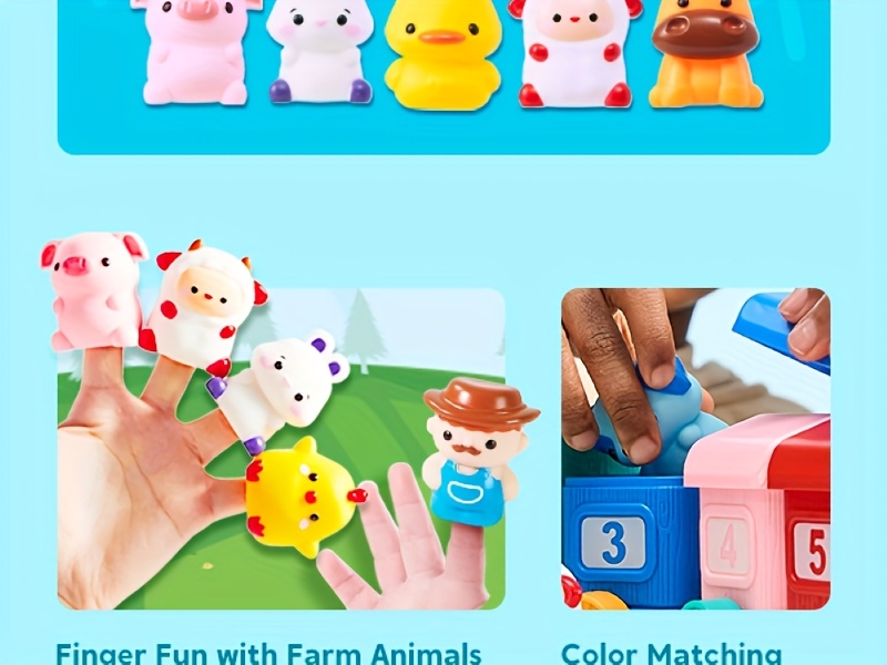 Discover hues and digits: Participate in activities like loading, unloading, stacking, and organizing with the numbered barns, promoting education through play. Stimulating imaginative play with entertaining characters and farm creatures: Inspire creativity with a farmer in the train and farm animals in the nine barn carriages, which can also be used as hand puppets for imaginative role-playing.