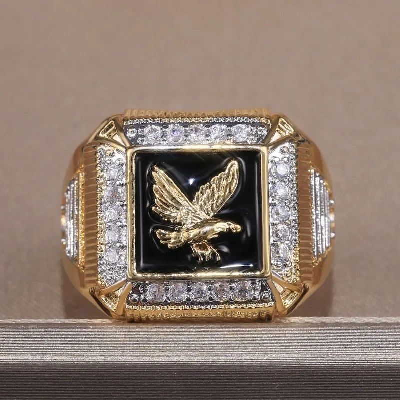 Fashionable Men's Ring Eagle Ring Inlaid with Artificial Cubic Zirconia Hip-hop Style, Give Male Friends A Birthday Gift
