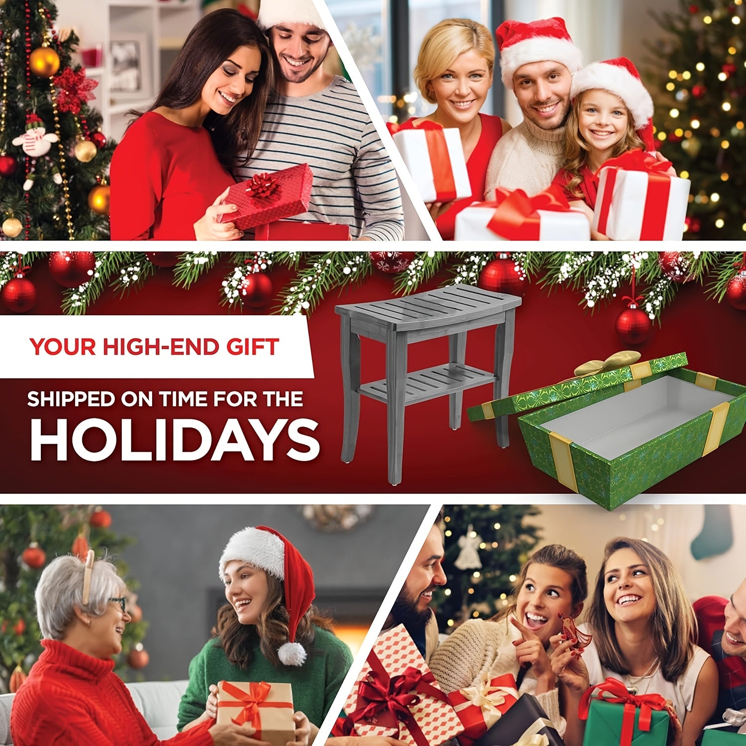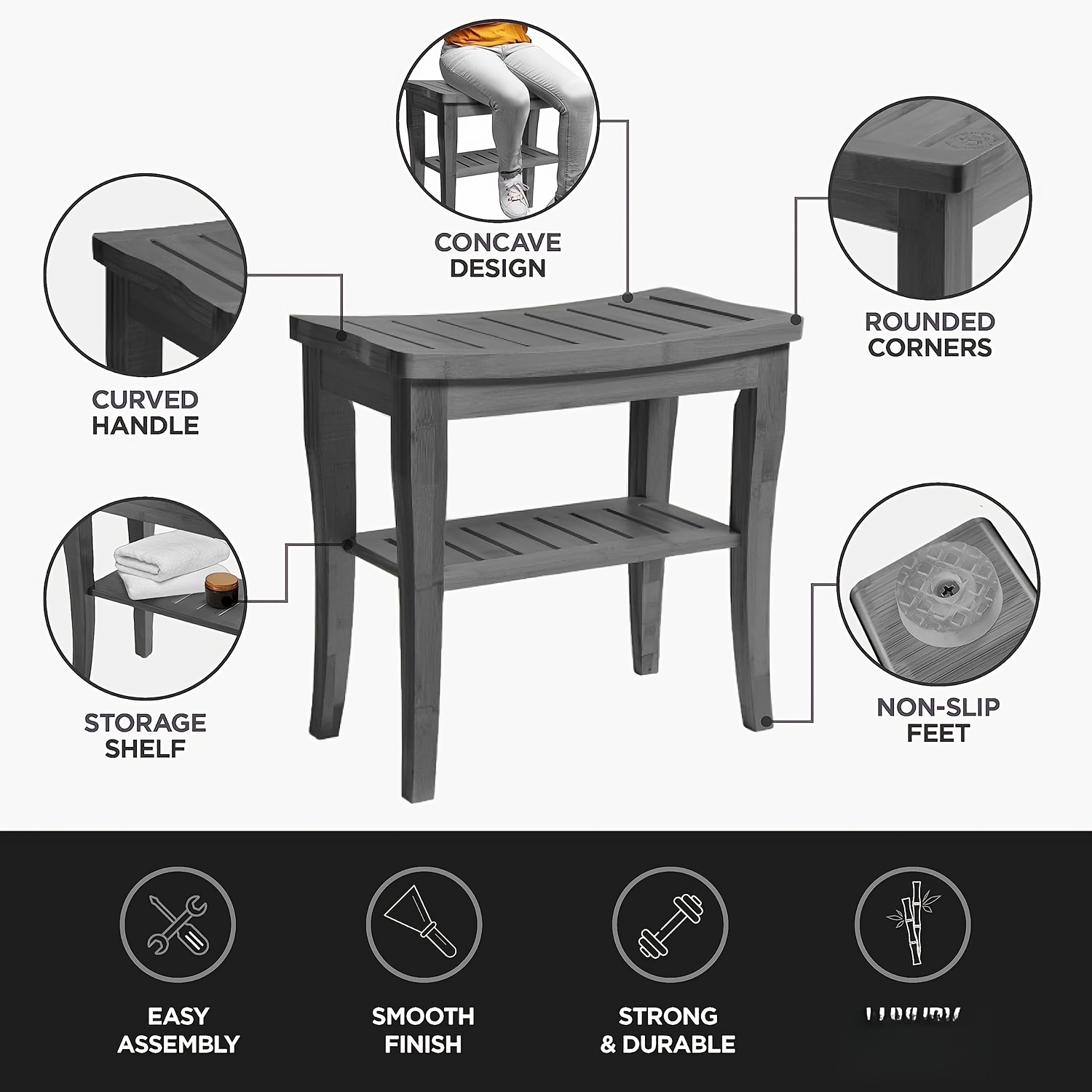 Foldable Bamboo Shower Bench with Storage Shelf & Non-Slip Seat - Sturdy Bathroom Stool with Curved Backrest-like Design, Moisture-Resistant for Indoor/Outdoor Use, Spa & Shower Decor, Space-Saving Foot Rest Shaving Stool (Gr