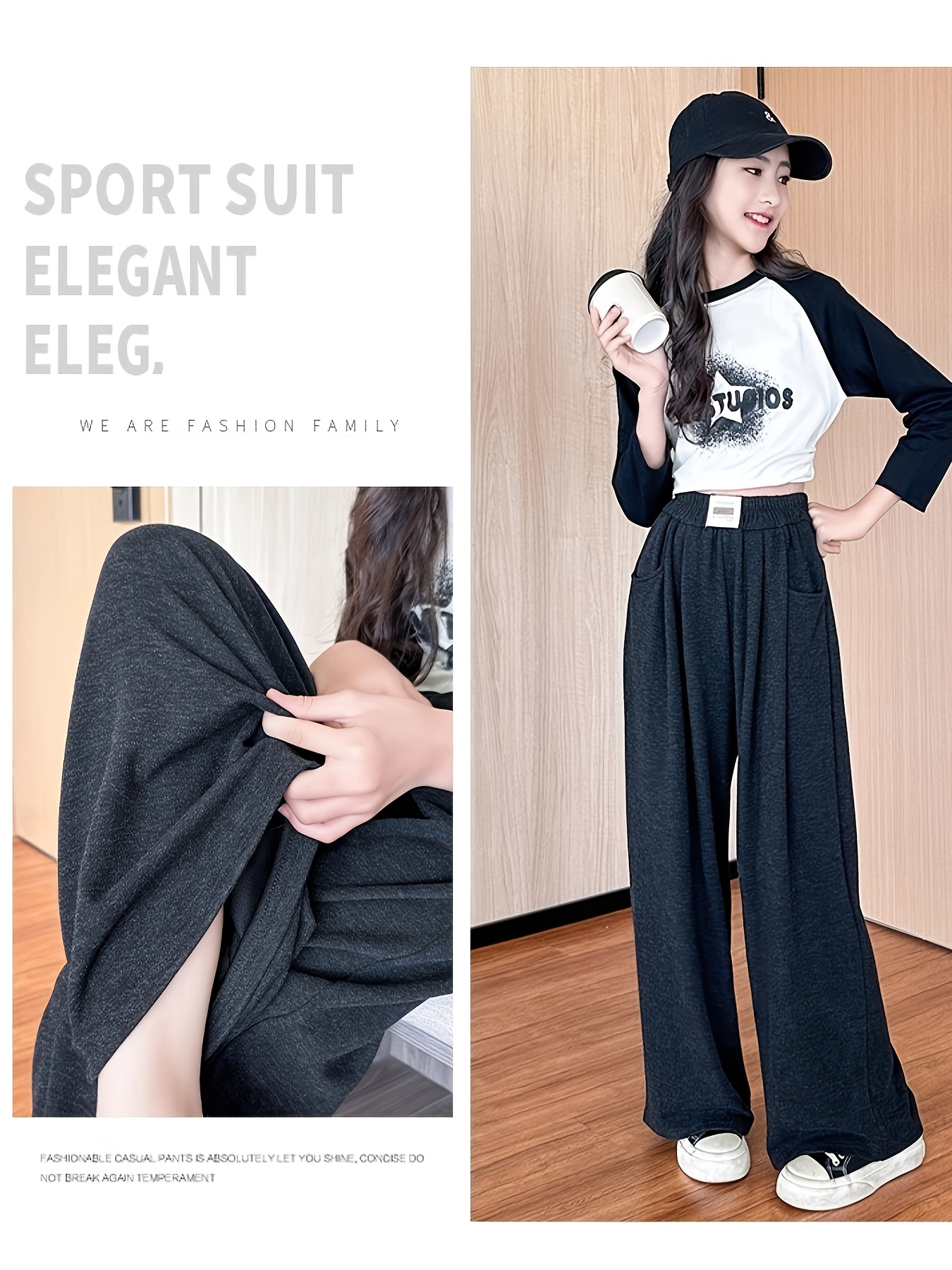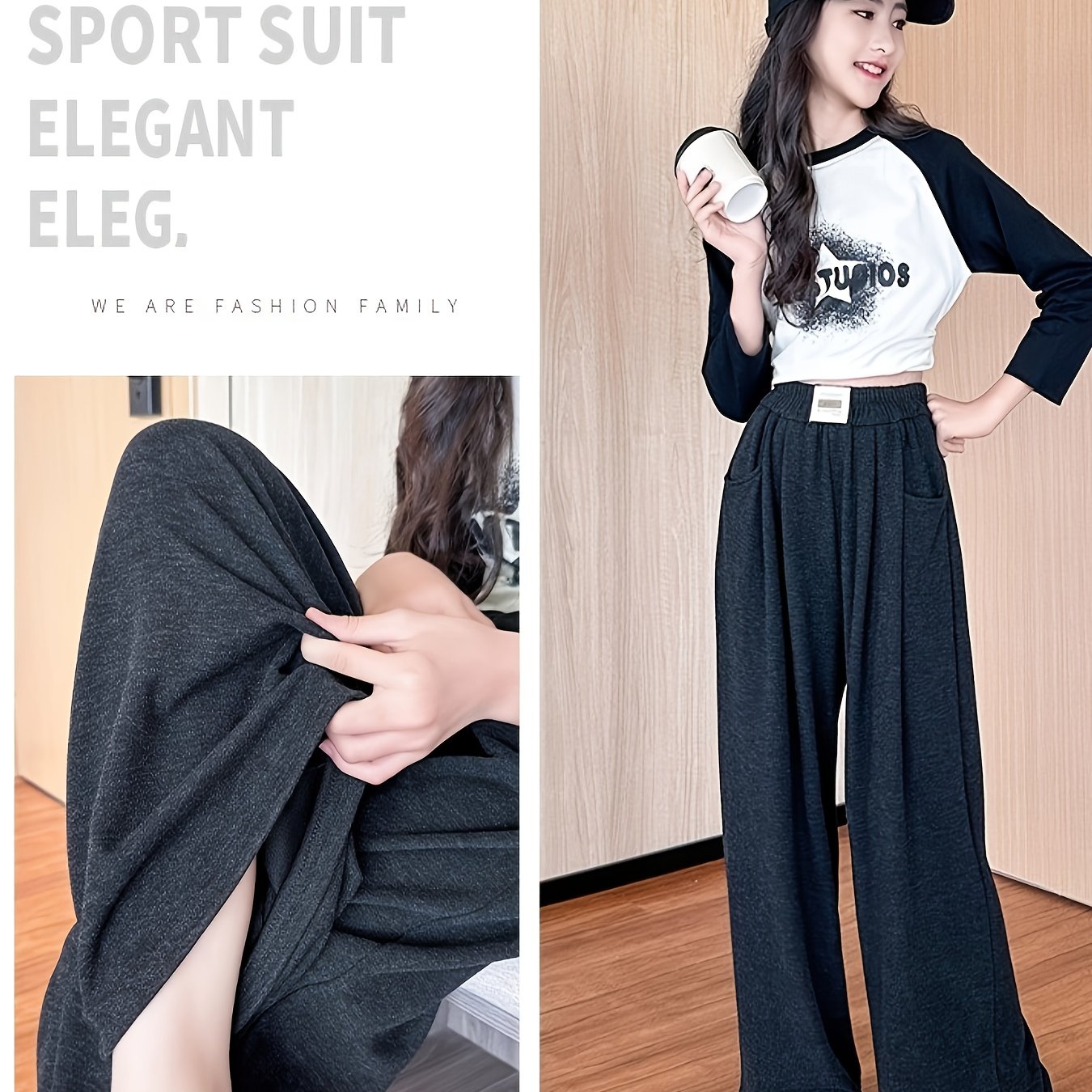 Girls 6-12 Years Wide-Leg Trousers - Stretchy Wrinkle-Resistant Pants with Adjustable Waist & Pockets, Soft Straight-Leg Leggings for School, Semi-Formal & Casual Attire (Navy Blue/Black) - Comfortable Stretch Fabric (Hand Wa
