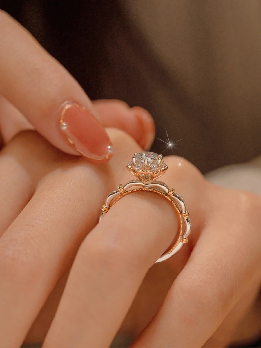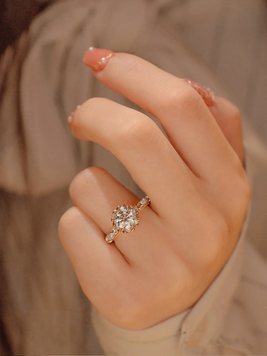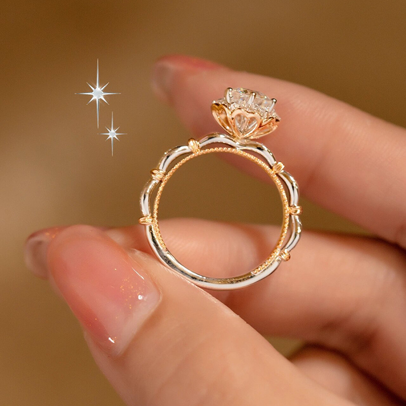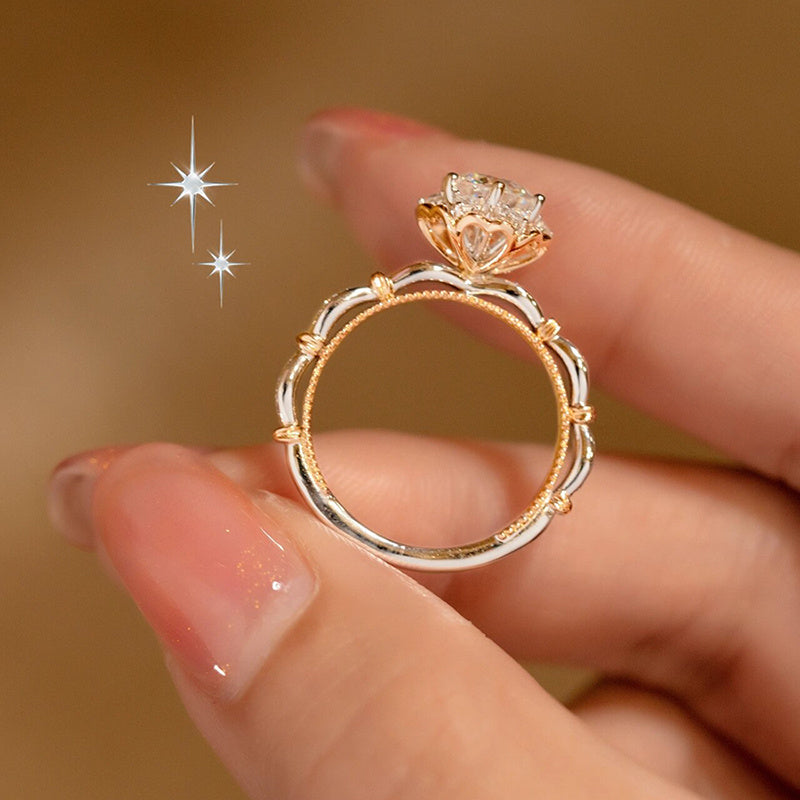 Hand bouquet shaped S925 sterling Silvery round cut Moissanite ring, daily niche design, high quality Women's jewelry, Valentine's Day gift for girlfriend, proposal, engagement wedding anniversary gift, birthday gift, party g
