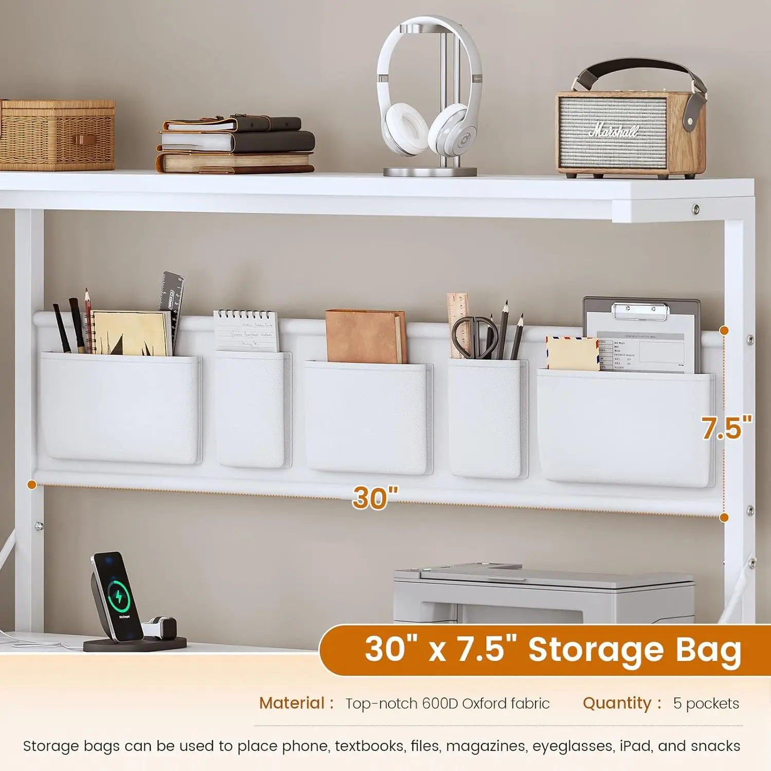 High quality Corner Computer Desk, Reversible L Shaped Computer Desk with Fabric Drawers and Power Outlet, 47.2” Gaming Desk