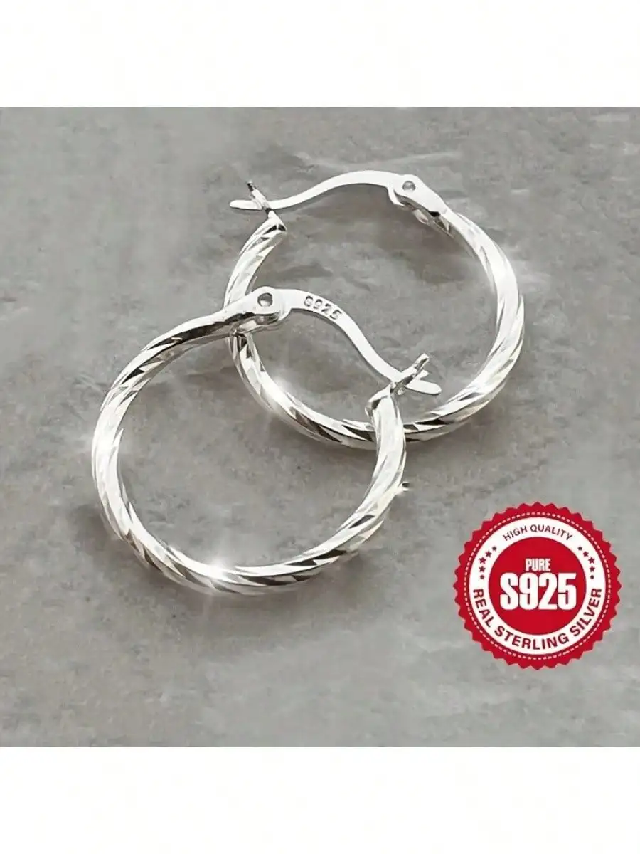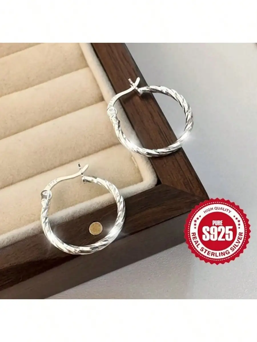 Hypoallergenic Silver Stud Earrings for Women - Lightweight Twisted Circle Design, Comfortable Mother's Day Gift Idea