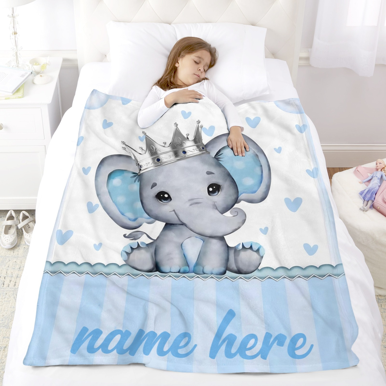 ized Elephant/Animal Name Blanket - Custom Bedspread with Name, Soft Lightweight All-Season Quilted Throw &, Bedding Gift, Bedtime Comforter (Add Your Name), Cot Bedding, Throw Blanket, Stitch Throw, Blankets With Name, Thick