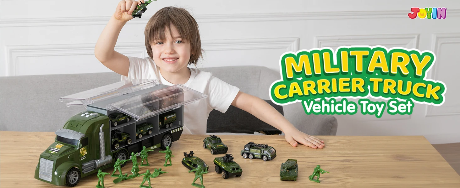 JOYIN 25 in 1 Green Military Big Truck Toys Army Men Tanks Set with Soldier Men Battle Car Toy in Carrier Truck for Boys Gifts