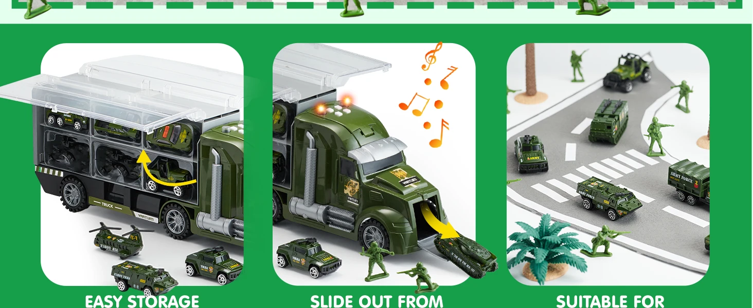 SO MUCH FUN. Each Military Army Truck Is In Unique Design And Perfectly Fit In Kids' Hands And Pockets. With Only Some Sand Or Grass, Your Children Can Create Their Own Military Battle Base.