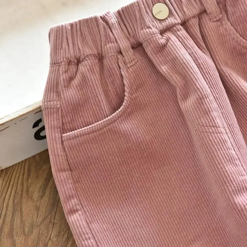 Kids Warm Pants Boy Girls Autumn Winter Corduroy Thick Outer Wear Sports Trousers 1-9Y Children Clothes Casual High Waist Pants