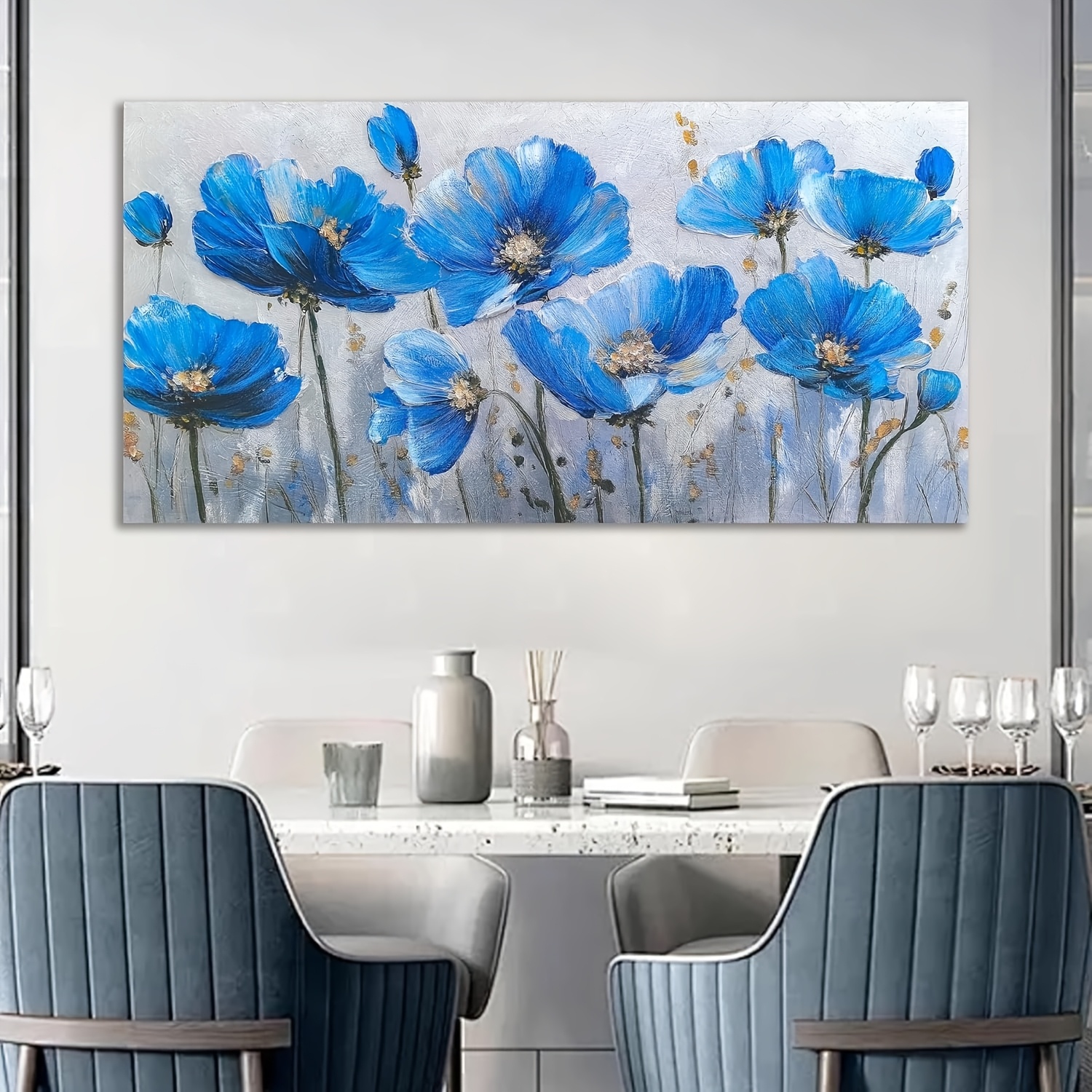 Large Blue Wildflower & Botanical Canvas Wall Art - Frameless 20x40 Inch Wildflower Pictures Suitable for Room & Office Decor, Beauty Large Artwork