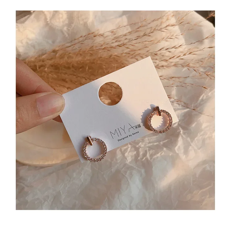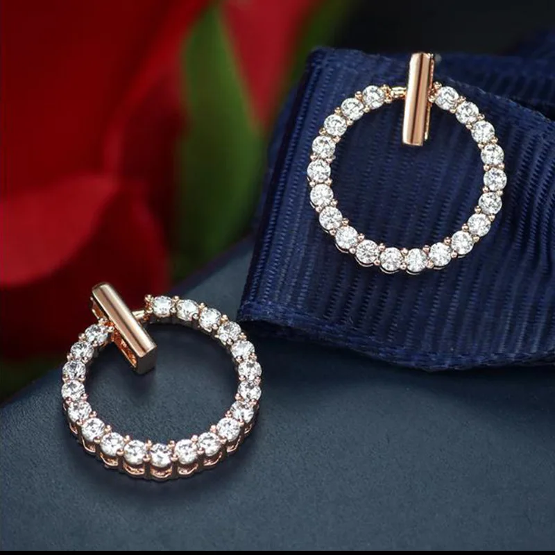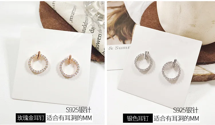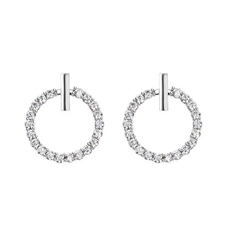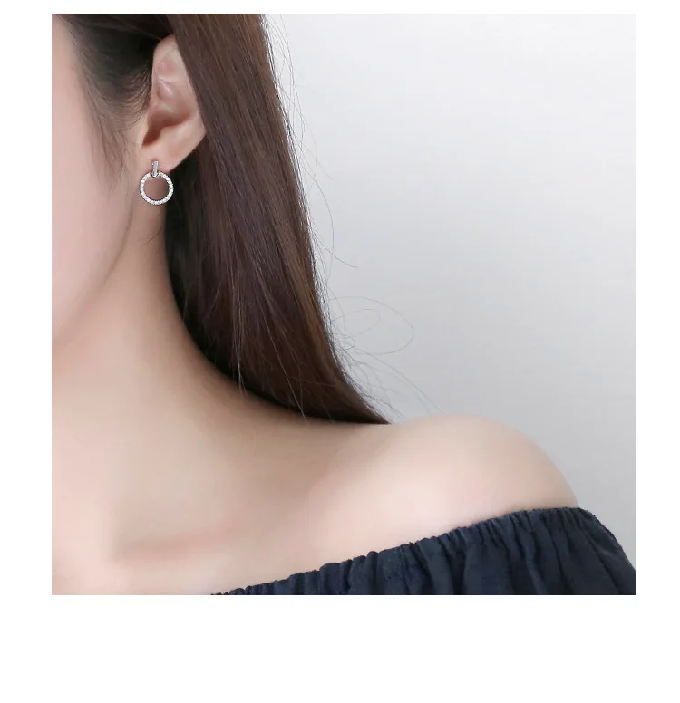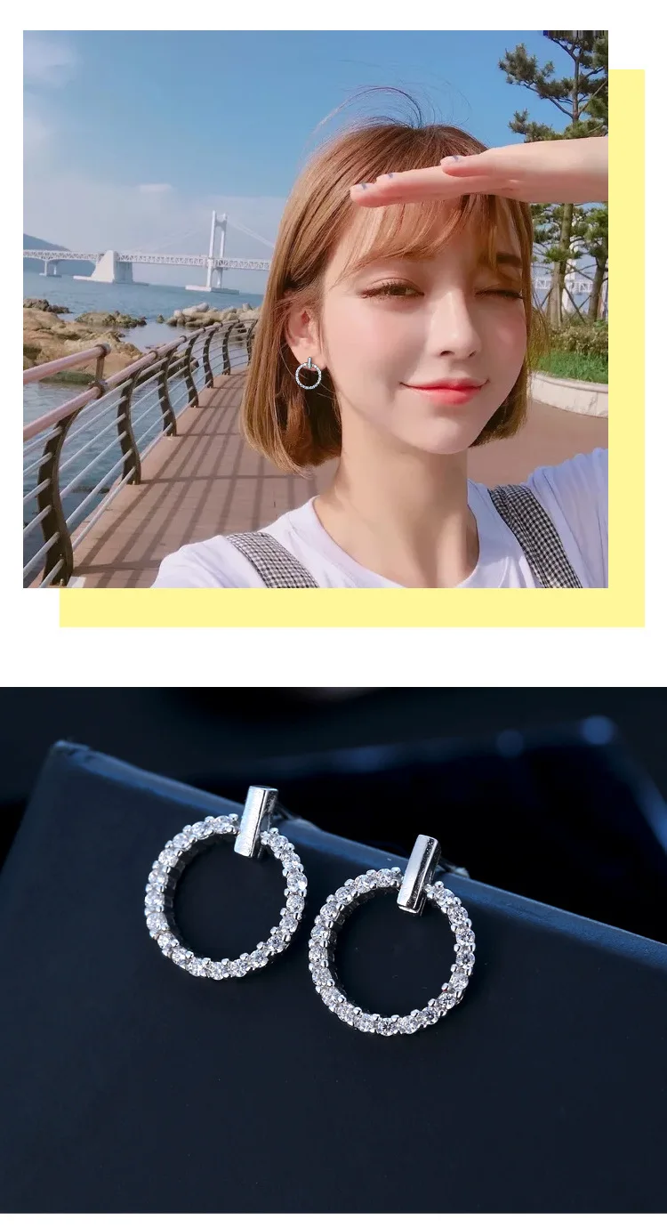 LByzHan Free Shipping Fashion 925 Sterling Silver Crystal Rhinestone Geometric Round Stud Earrings For Women Beautiful Jewelry