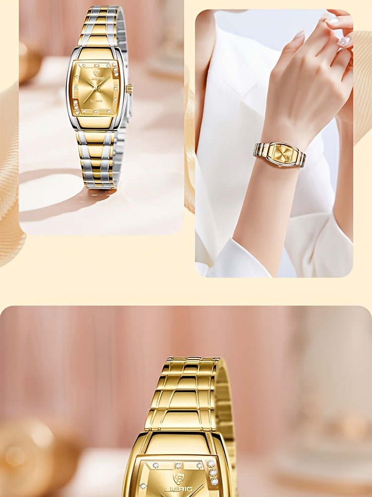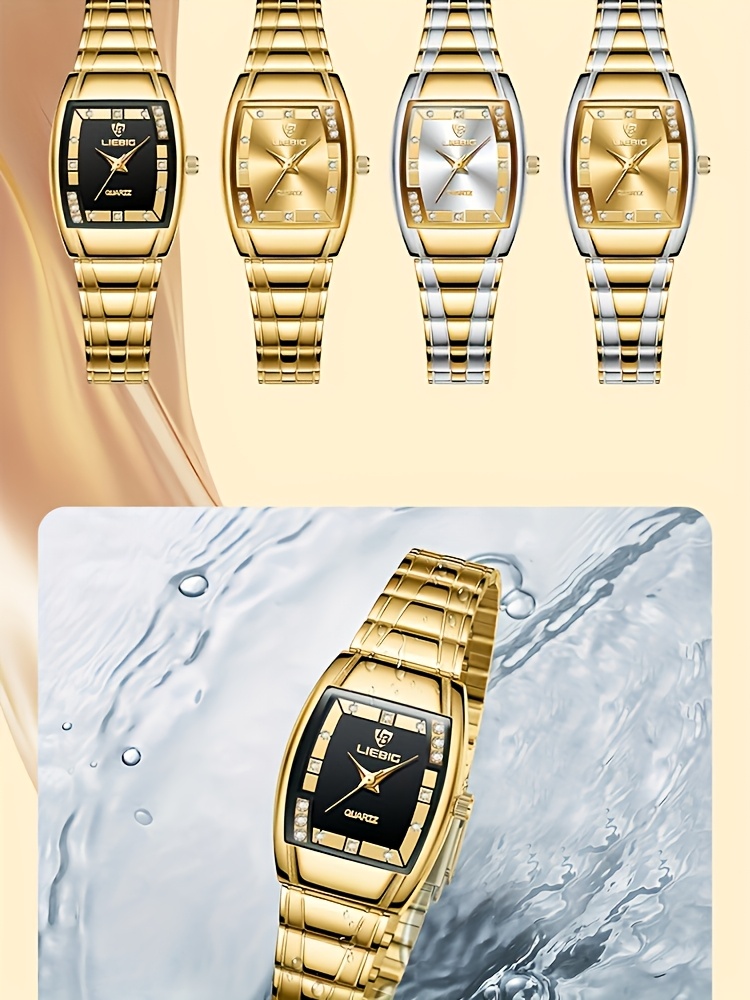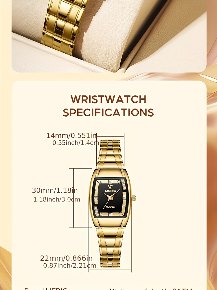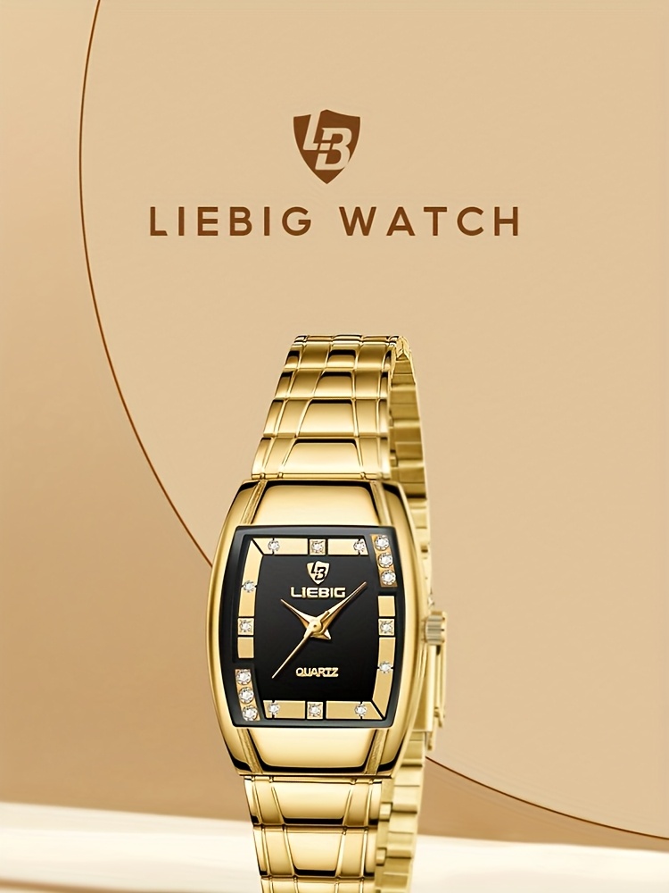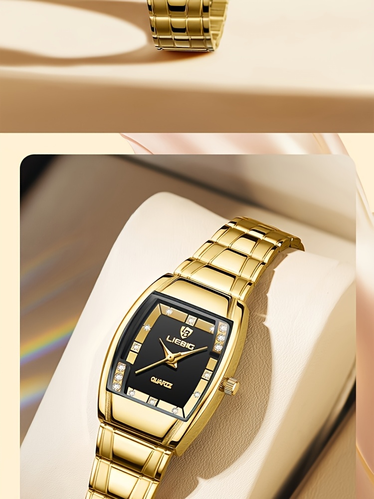 LIEBIG Luxury Women's Quartz Watch - Elegant Golden-Tone Stainless Steel Band, Black Dial with Gemstones, up to 1181.1 inch, World Time Feature, Oval Case, Perfect for Parties & Gifts, LIEBIG