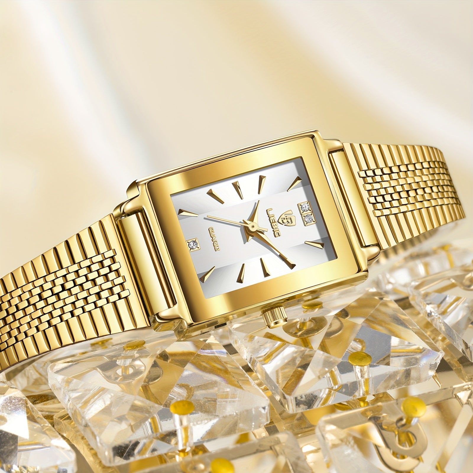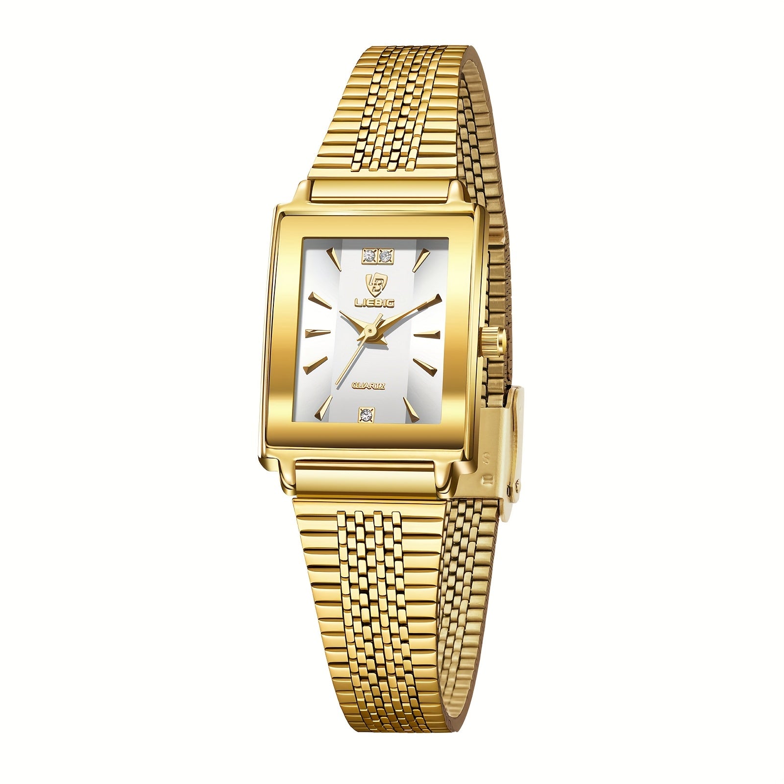 LIEBIG Luxury Women's Watch - Elegant Square Black Dial with Golden Markers, Adjustable Stainless Steel Band, Night Light & Quartz Movement, Perfect for Office & Special Occasions (Birthday/Anniversary Gift), Formal Accessory