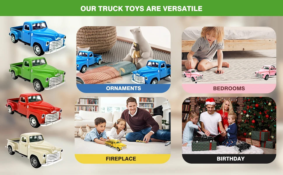 Kids Cars Toy: Little Green trucks christmas decor,It can be given to family or friends, or it can be used as a decoration to decorate your home or office,It is also a favorite toy for children,A Blue truck toy for kids of all ages