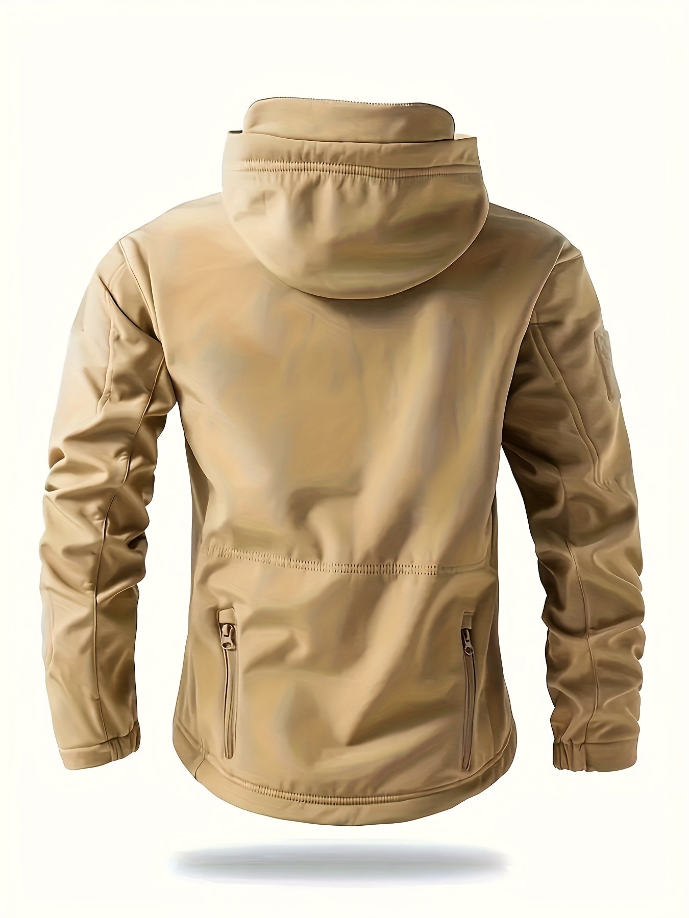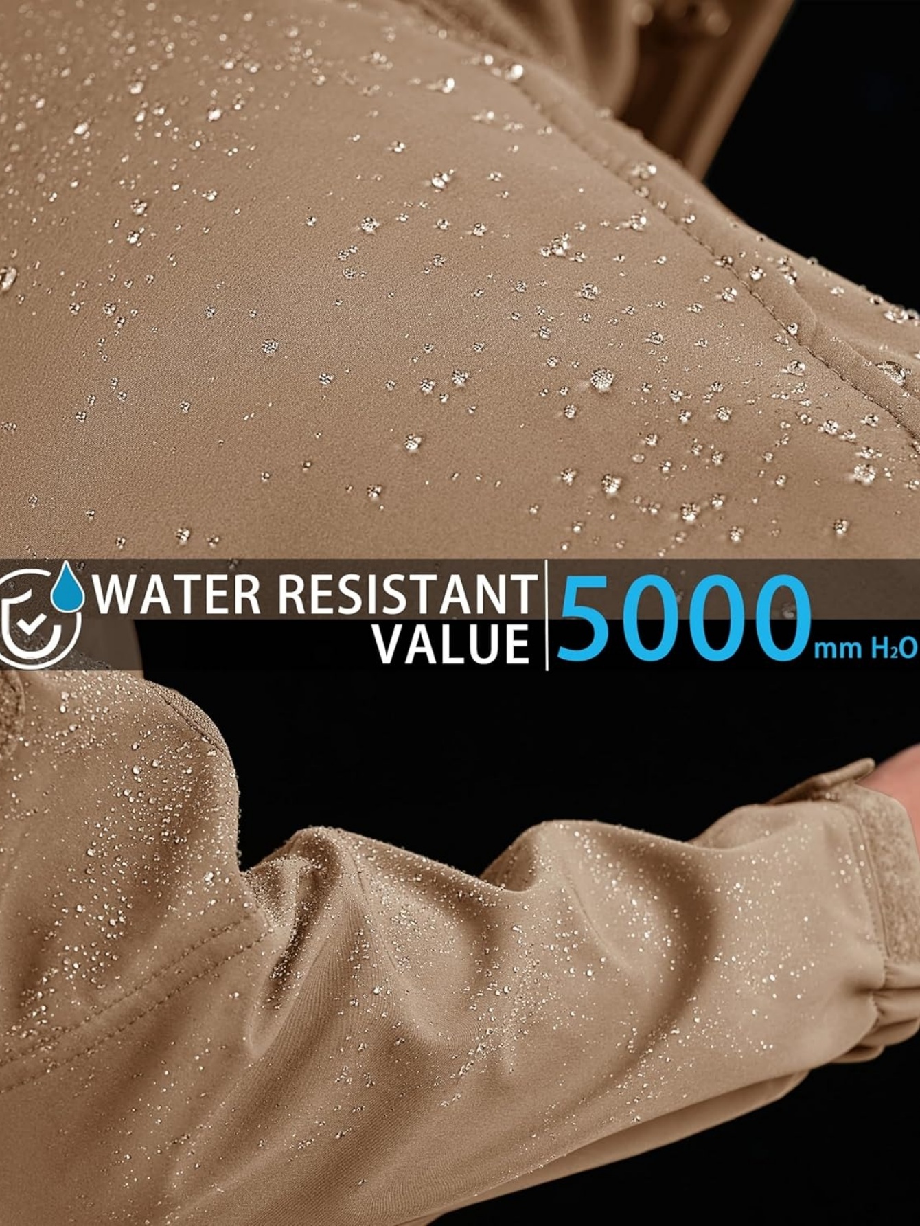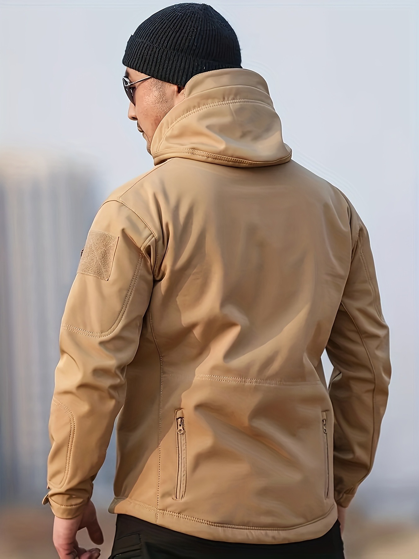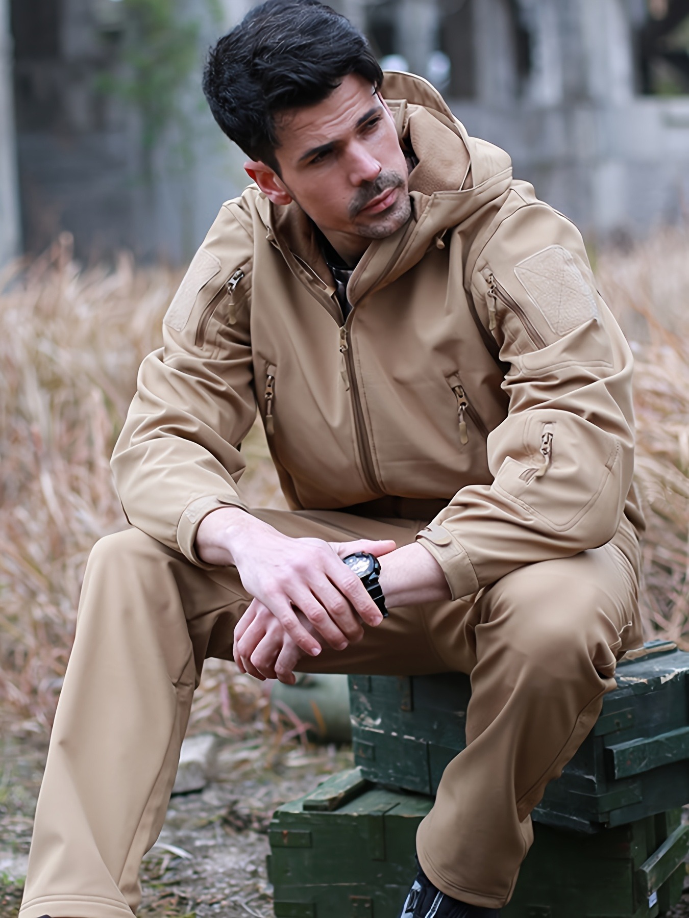 Men's Heavy-Duty Windproof Insulated Tactical Winter Jacket with Full-Zip Hooded Softshell Coat, Multiple Pockets & Zippered Pocket Flap - Machine-Washable Outdoor Survival Gear for Hiking, Skiing, Hunting, Camping (Black) -