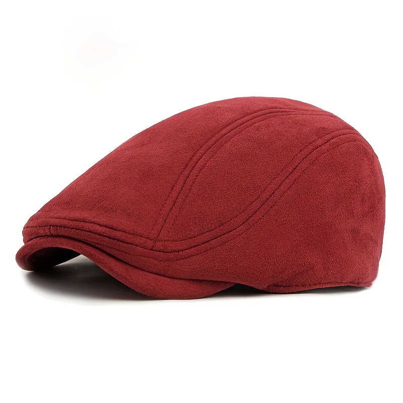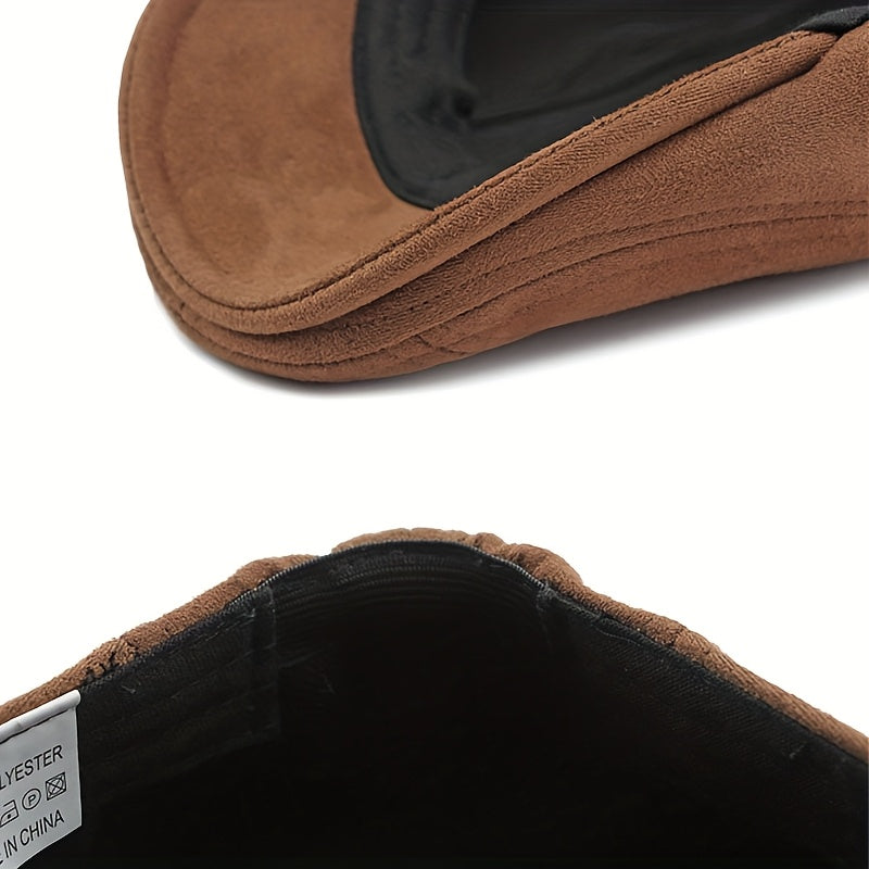 Men's & Women's British Retro Suede-Like Flat Cap - Adjustable Newsboy Beret Hat with Pull String Closure, Lightweight Driving Cap for Weddings, Events & Formal Wear (Multi-Color Options: Burgundy, Olive, Brown, Tan, Grey, Bl