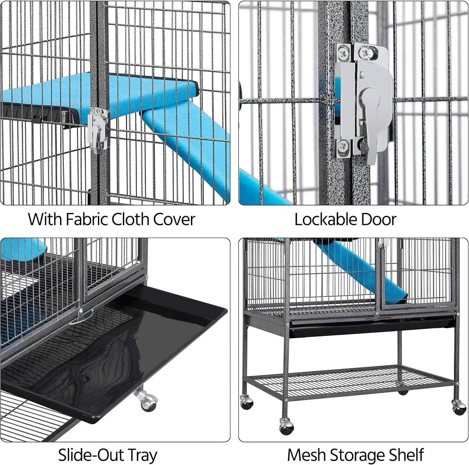 Extra pet supplies storage: There is a spacious metal open shelf under the cage for keeping pet eating and cleaning tools handy and tidy. This thoughtful design ensures a tidy cage and provides great convenience when feeding your pet in your daily life
