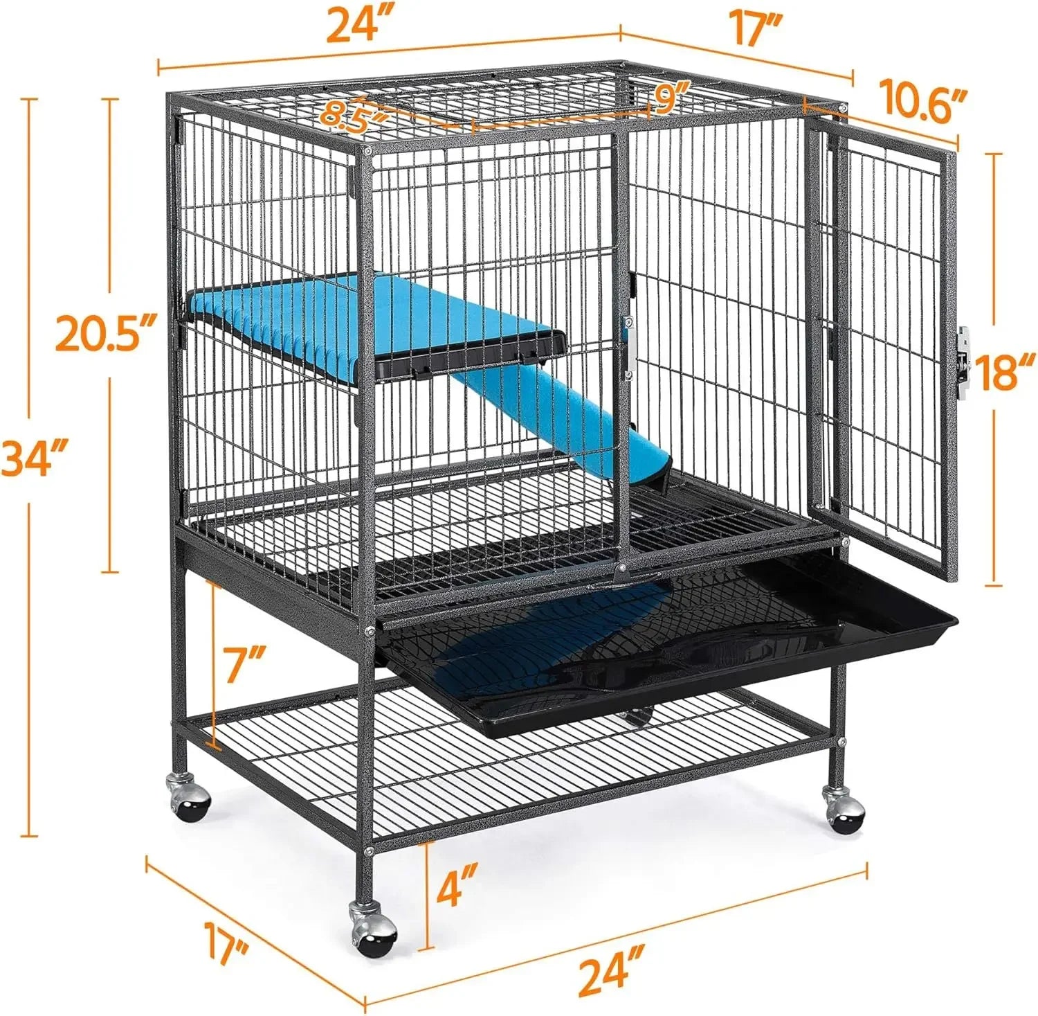 Metal 34'' Ferret Cage Critter Nation Cage Indoor for Adult Rats/Rabbits/Ferrets/Chinchillas 2-Tiers Small Tray&Shelf, Black