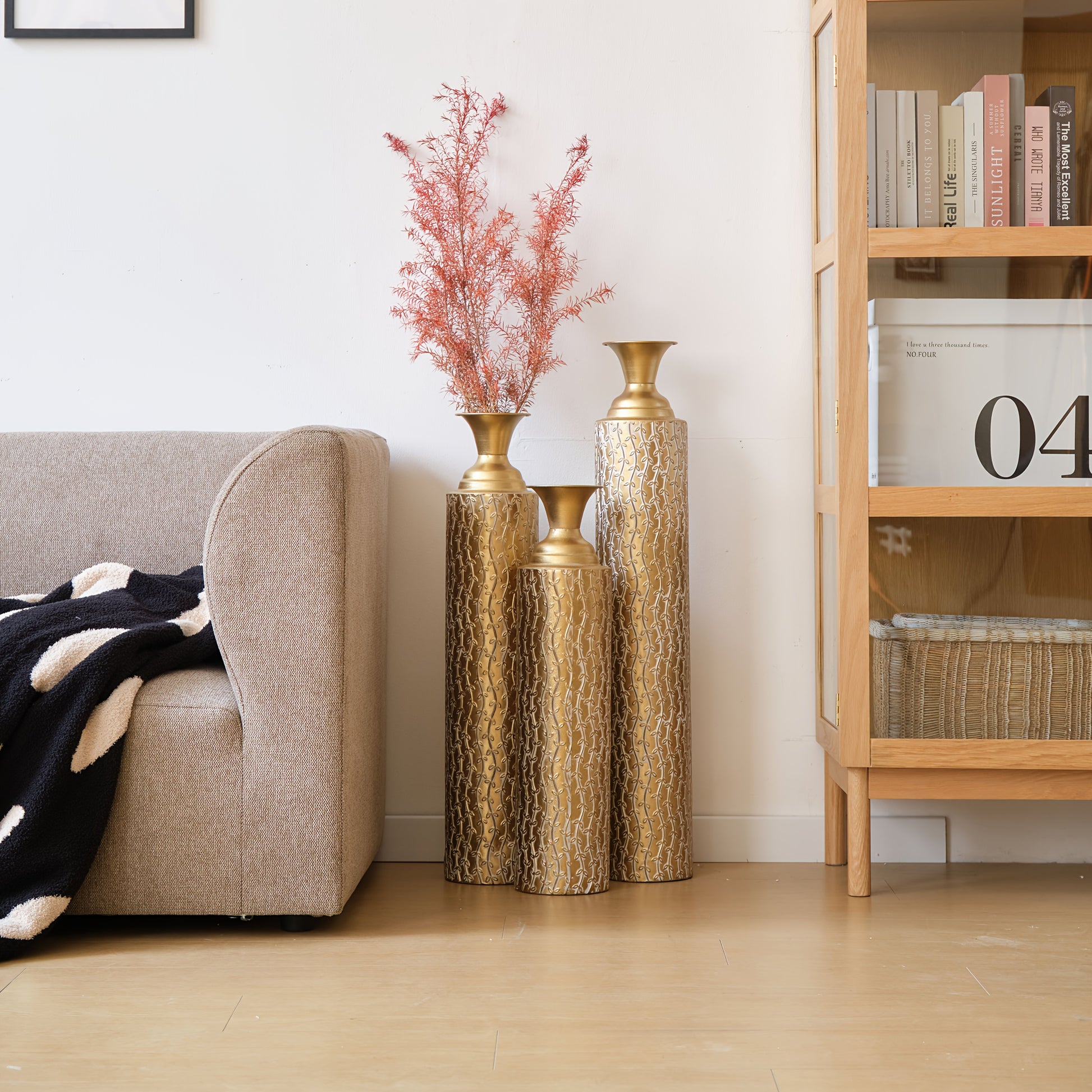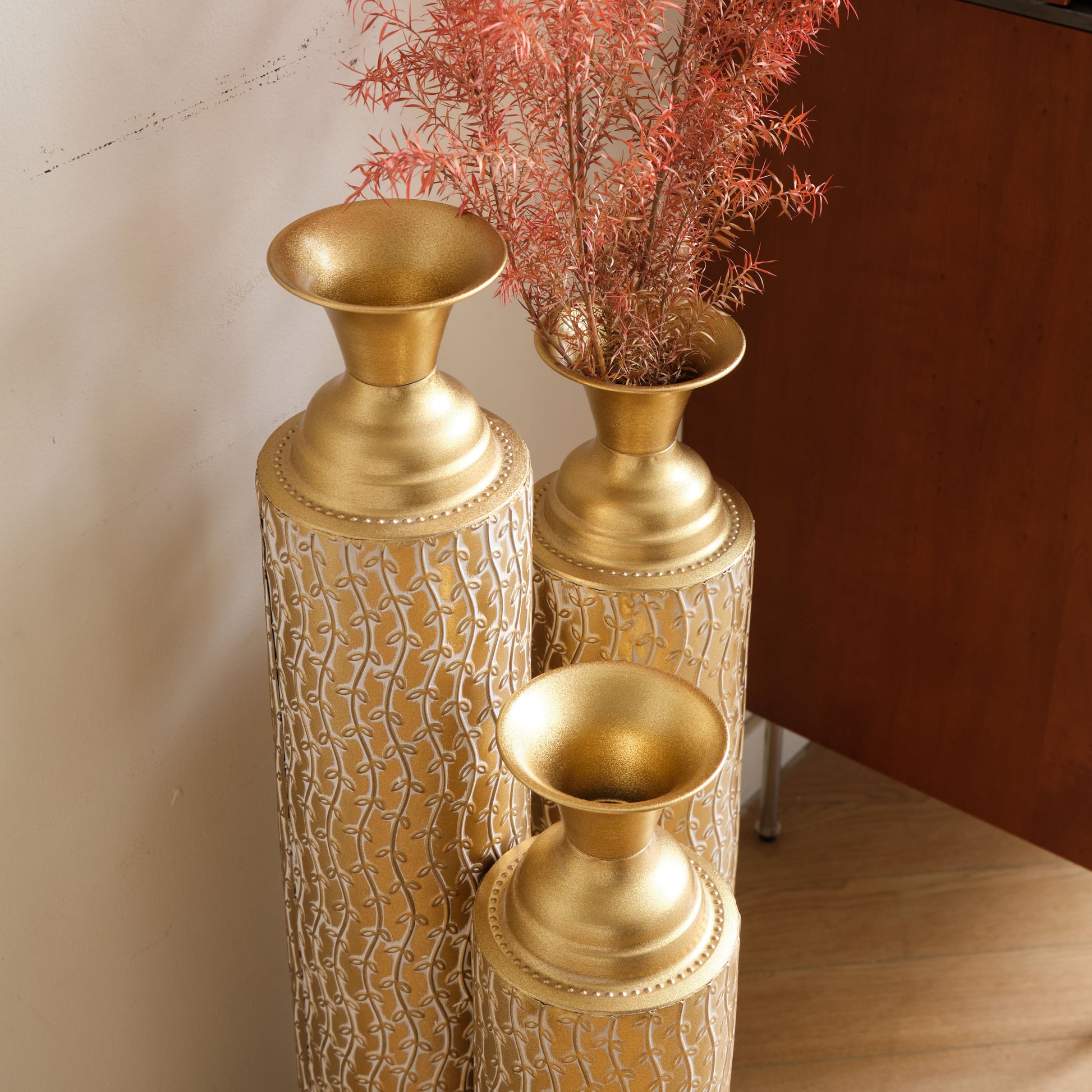 Metal Decorative Vases High Distress Metal Center Vases With Growing Vine Patterns, Set Of 3 Vases For Home Decoration 34 ", 29 ", 25 "H, Golden, Valentine'S Day Gifts, New Home/office Decoration Gifts, Wedding Centerpiece Va