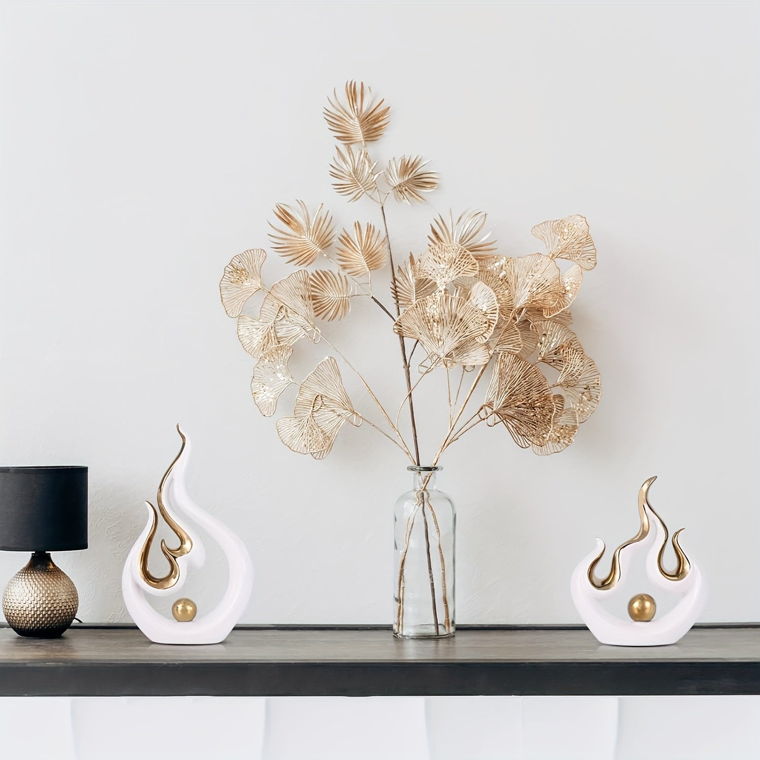 Modern Abstract Flame Sculpture - Resin Tabletop Decor with Golden Accents, Perfect for Weddings, Home Decor, and Office Centerpieces, Wedding Table Decor | Modern Art Piece | Durable Resin