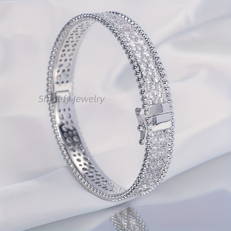 Moissanite Bracelet Jewelry for Women: 925 Sterling Silvery Hypoallergenic Bracelet with Dazzling Moissanite Stones, Elegant & Sexy Design for Wedding/Valentines/Christmas Gifts - Luxe Gift Box for Wife, Girlfriend, Mother