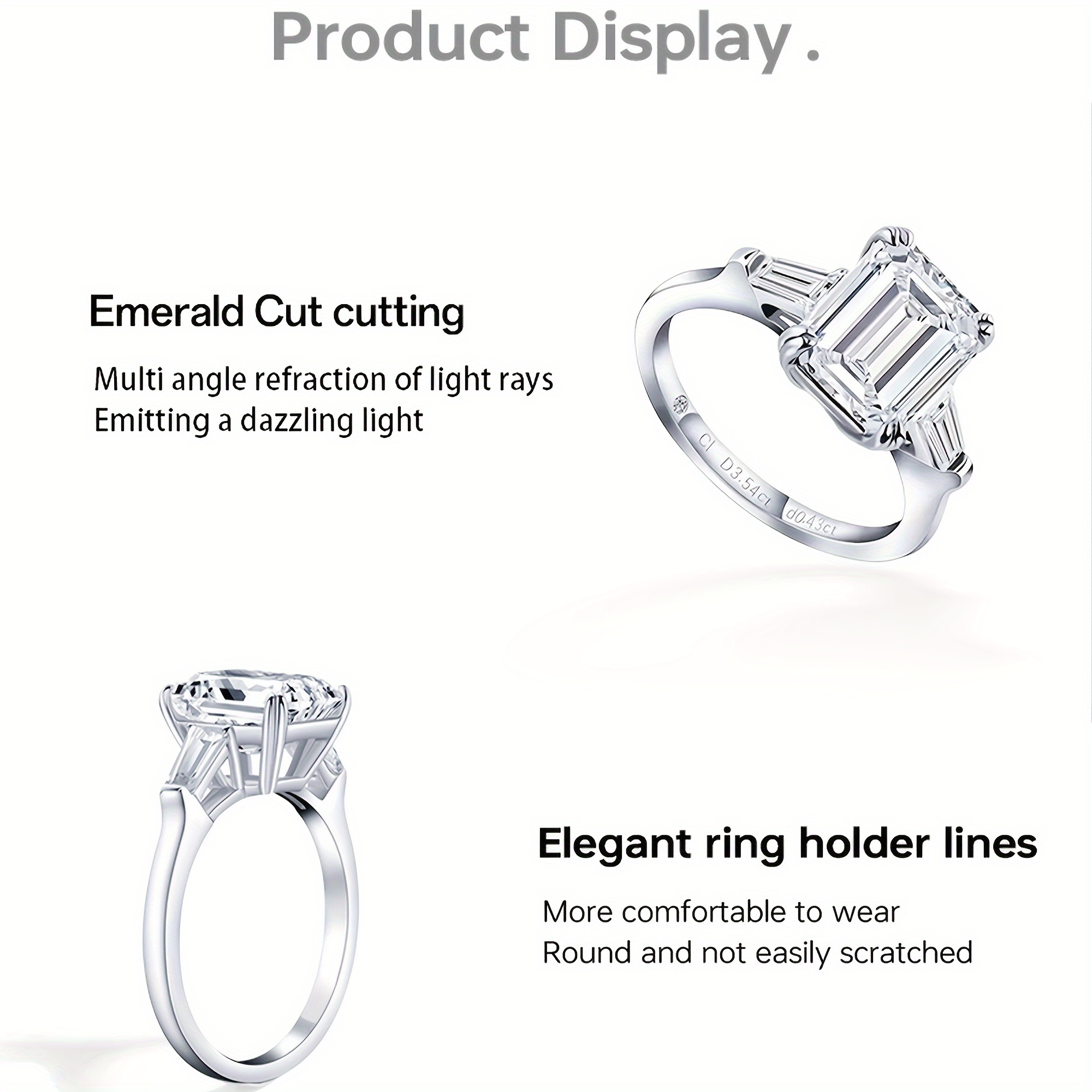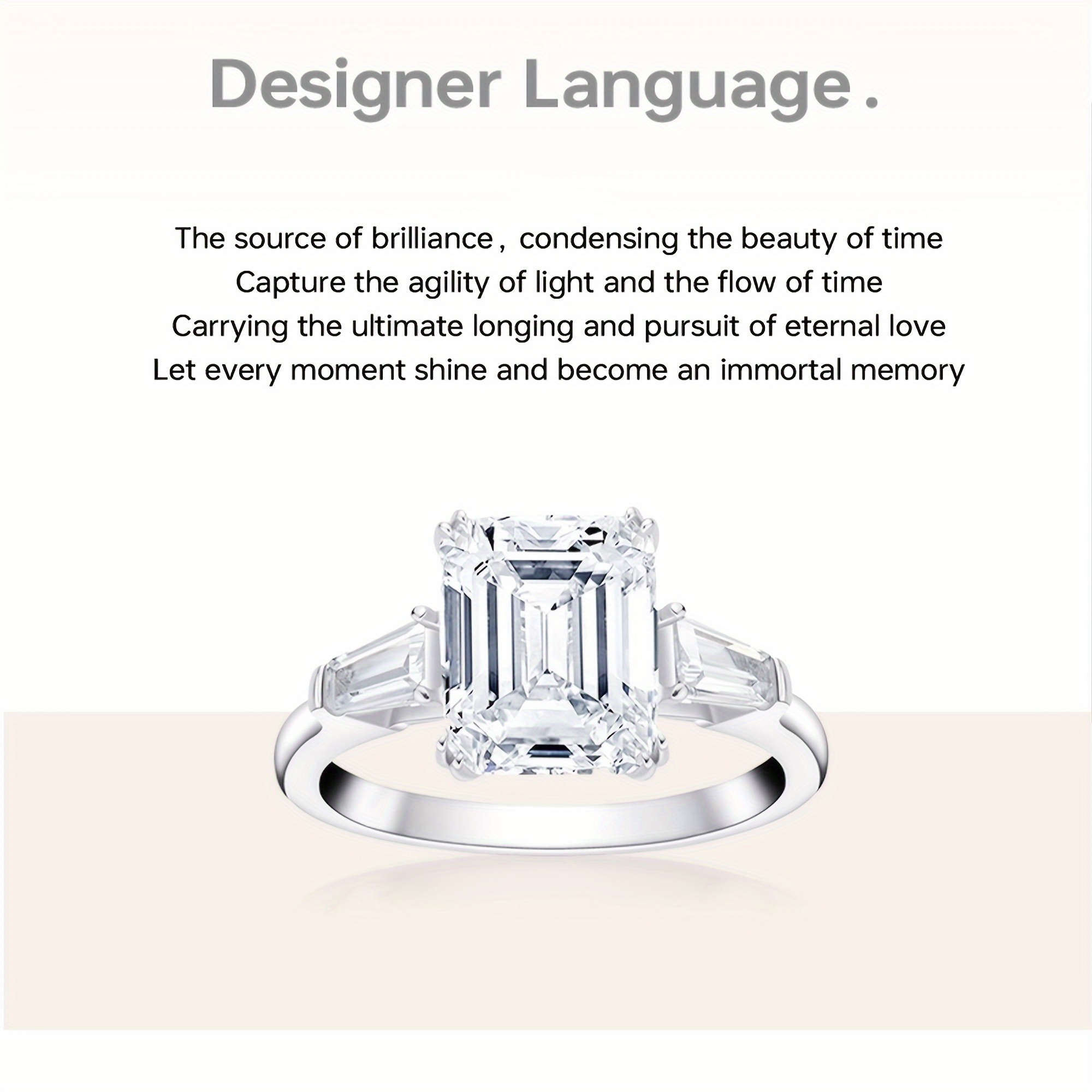 Moissanite S925 Premier League Silvery Ring, 8*10mm 4 Quart Square Diamond Ring, Luxurious Elegant and Beautiful Jewelry, Proposal Ring with Gift Box, as a Gift for Your Mother, for Her, Birthday, perfect for Wedding and Anni