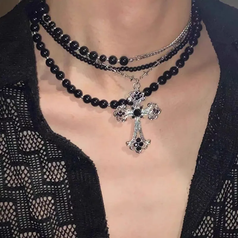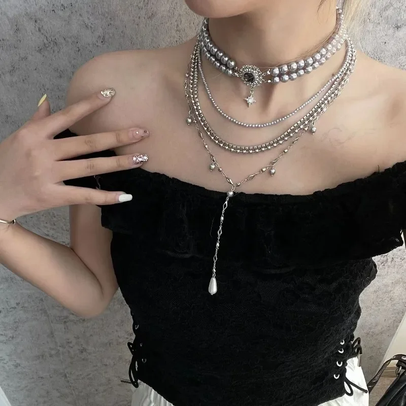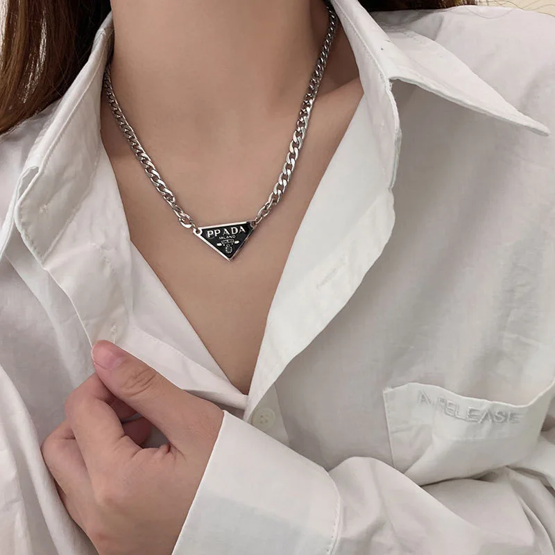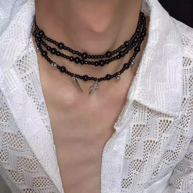 Multi layered necklace with stainless steel punk style hip-hop collarbone chain for couples to wear as holiday gift