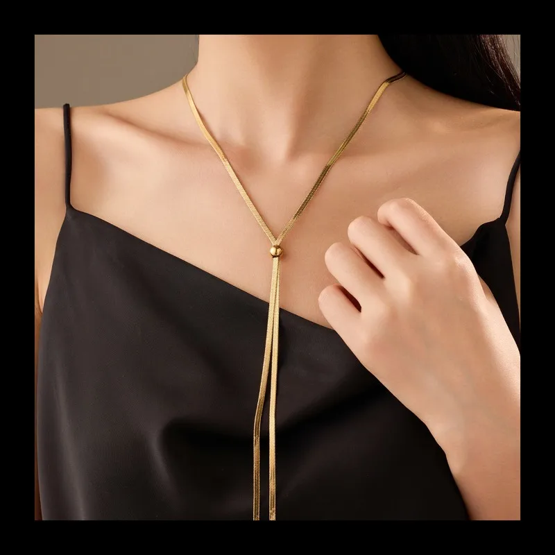 New Niche Light Luxury Style Can Be Pulled Long Necklace Fashionable Versatile High Sense Snake Bone Chain