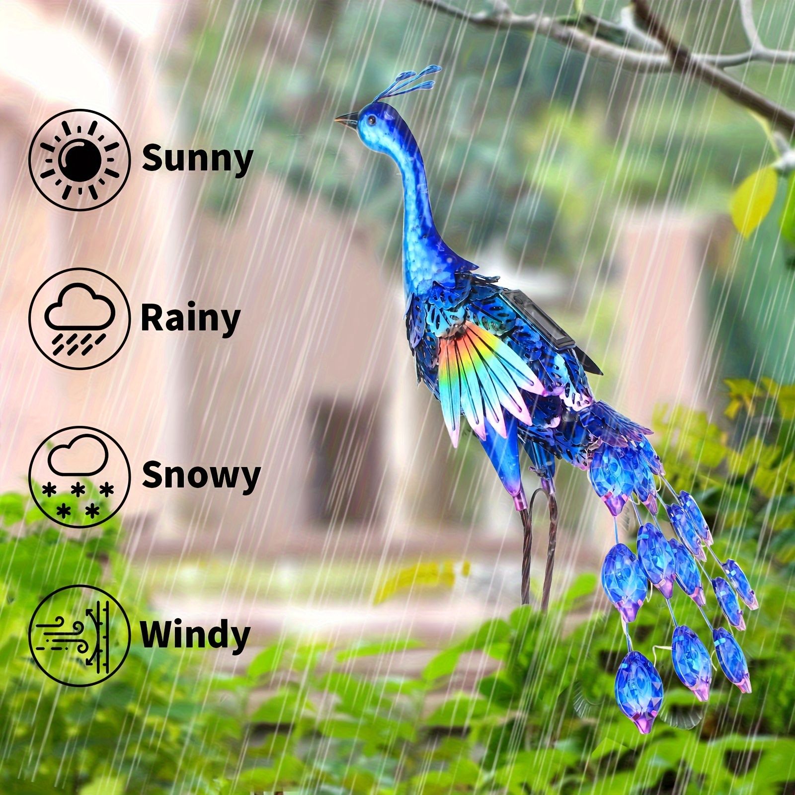 Outdoor Solar Peacock Statue Garden Deco Metal Birds Garden Sculptures Statues Halloween Decorations