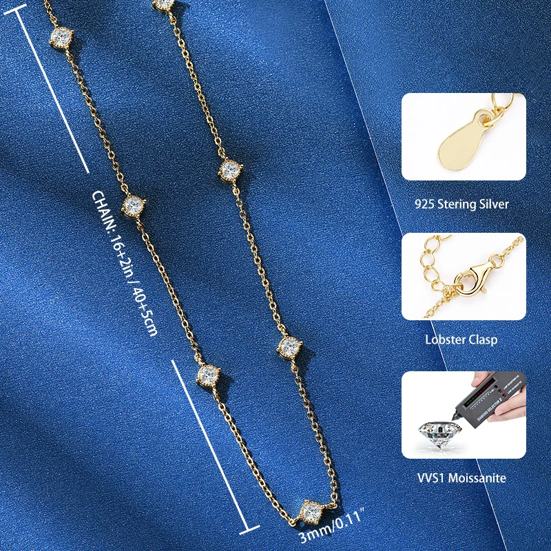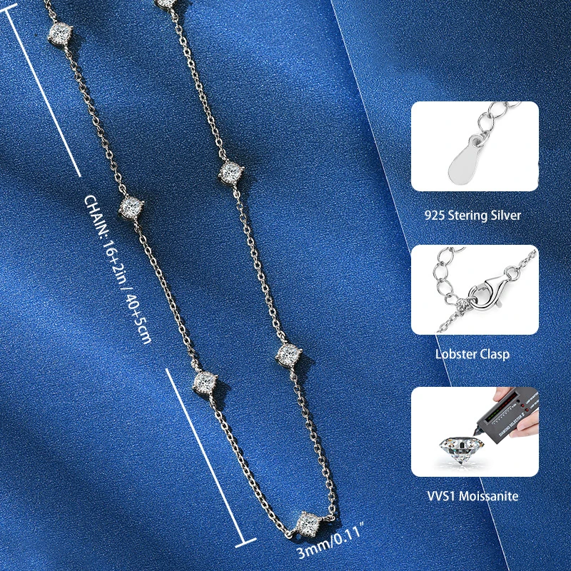 OXTAO D VVS1 3mm Moissanite Diamond Necklaces Female S925 Silver Clavicle Chain Luxury Necklace Jewelry Gift GRA Certified
