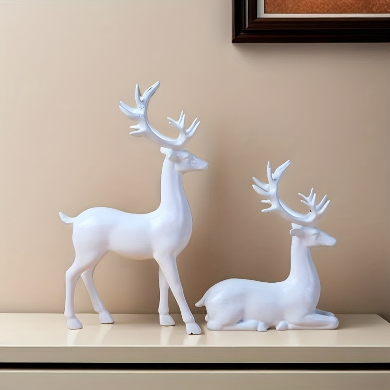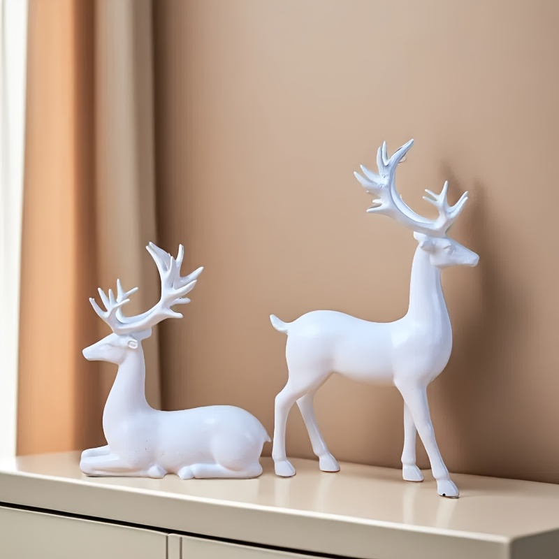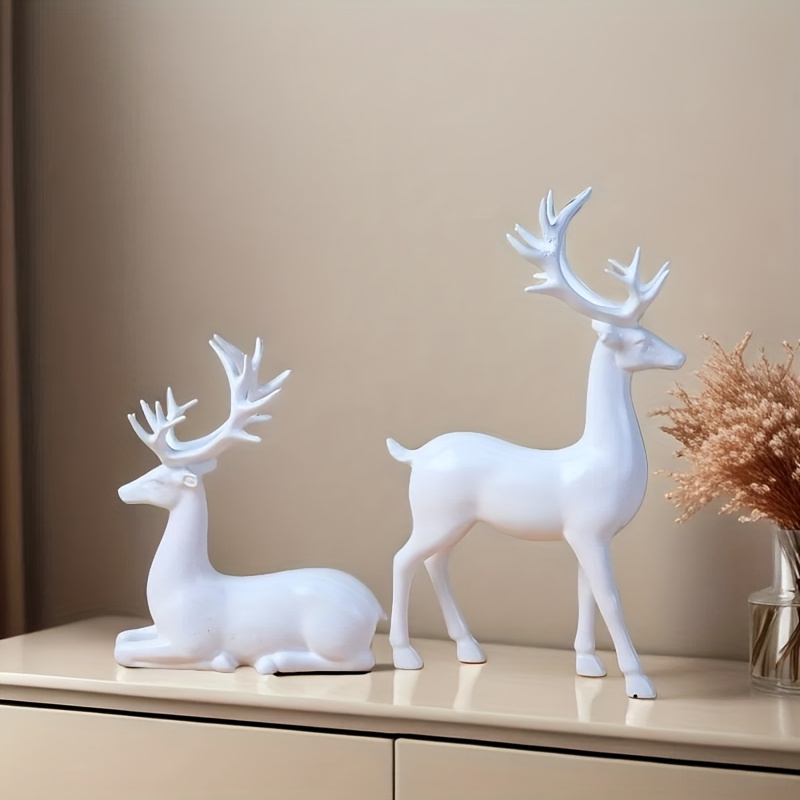 Pair of White Reindeer Statues, Suitable for Valentine's Day Gift, Small Deer Decorative Ornaments, Ideal Choice for Living Room and Fireplace Display, Perfect for Christmas, Valentine's Day, New Year Giftsfor Christmas, hall