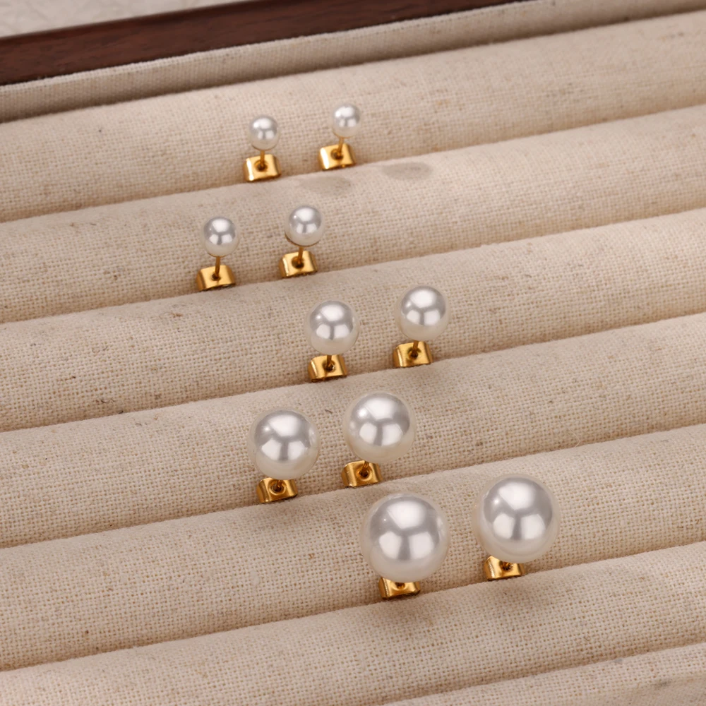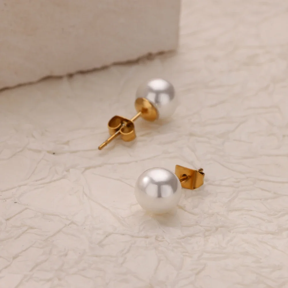 Pearl Stud Earrings for Women Stainless Steel Earrings 2024 Trend Aesthetic Piercing Ear Jewelry Couple Gift Freeshipping aretes