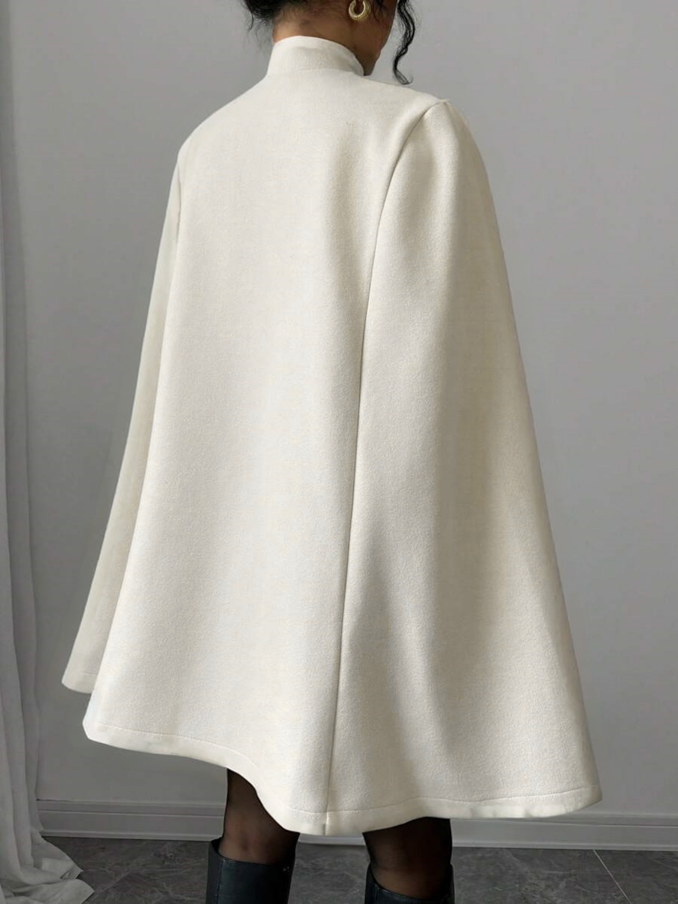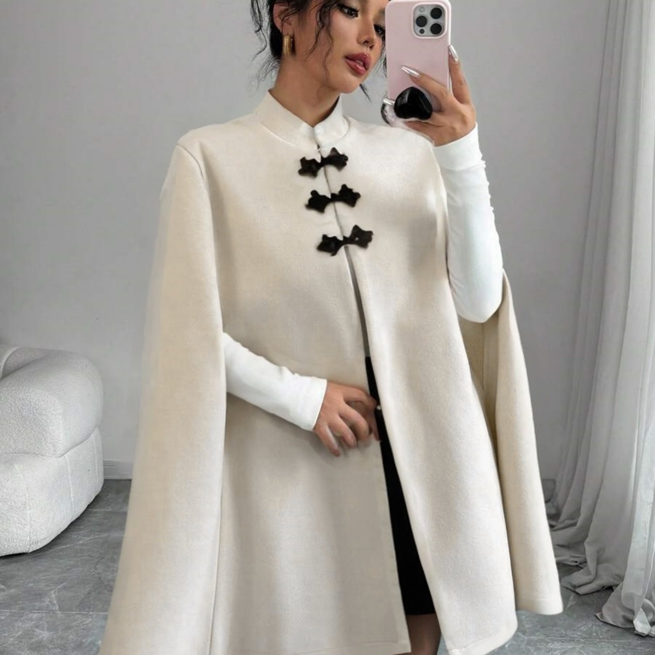 Plus Size, Plus Size Women's Elegant Chinese Cape Coat - Winter Thick Jacket with Stand Collar & Mandarin, Front Closure, Belted Waist, Machine Washable Outerwear for Weddings, Parties, Professional (Warm Coat)