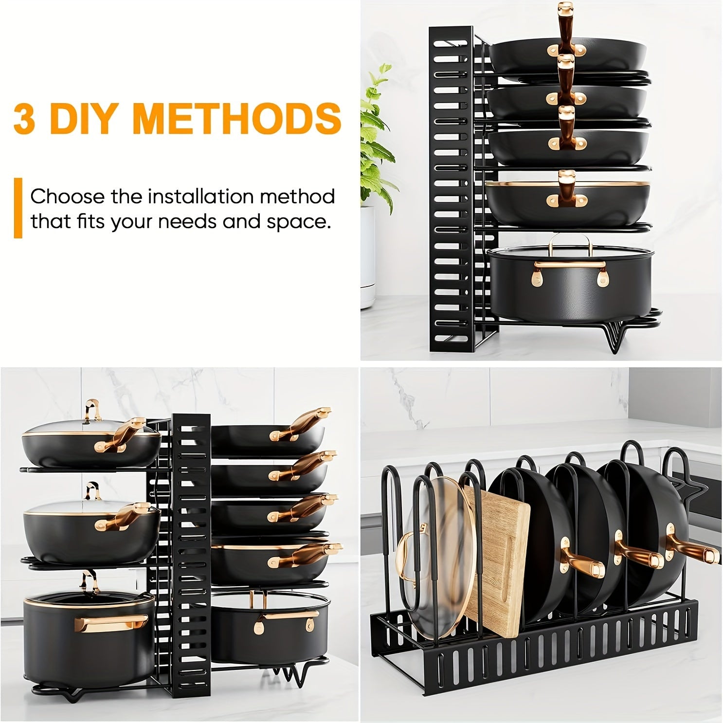 Pot Organizer 8 Tier Pot, Pan Organizer, Kitchen Cabinet Kitchenware Organizer And Pot Lid Organizer For Storage, Organizers Inside Cabinet With 3 DIY Methods