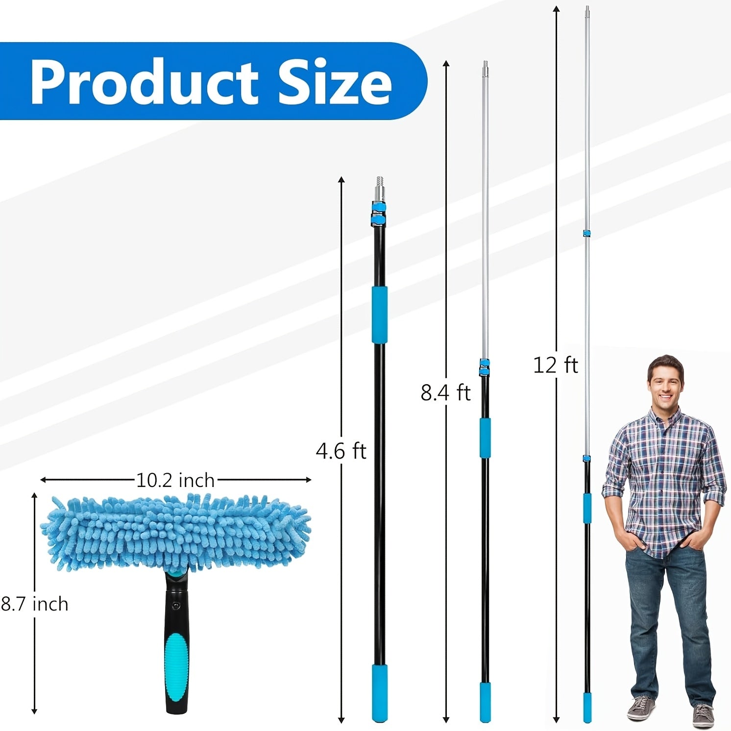 Professional-Grade Adjustable 5-12ft Window Washing Kit with Telescopic Pole & Heavy-Duty Alloy High Reach Window Cleaner Tool - 2-in-1 Squeegee for Indoor/Outdoor Use, for, Commercial & Multi- (Available 365 Days)