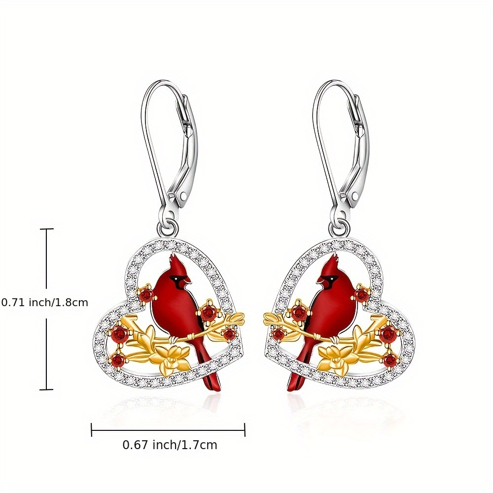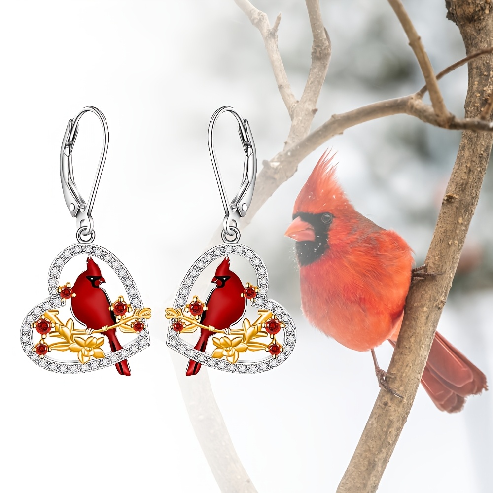Red Bird Cardinal Earrings for Women, 925 Sterling Silver Cardinal Appears When an Angel Approaches Drop Earrings, Heart Shaped Cardinal Jewelry Memorial Gift, Best Choice for Christmas Gift