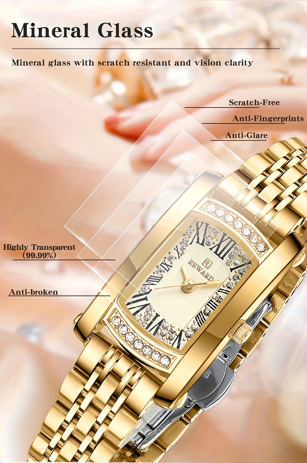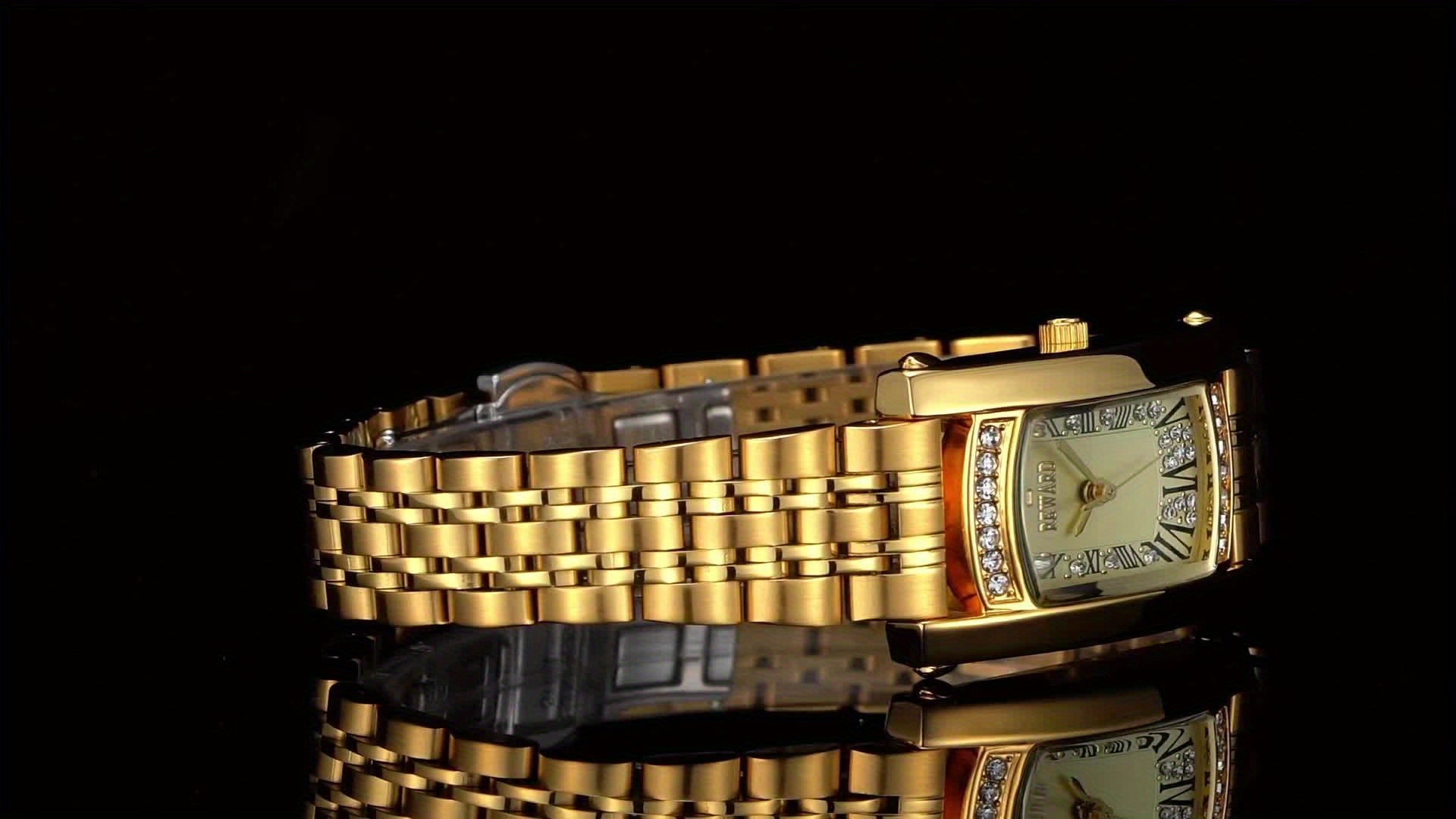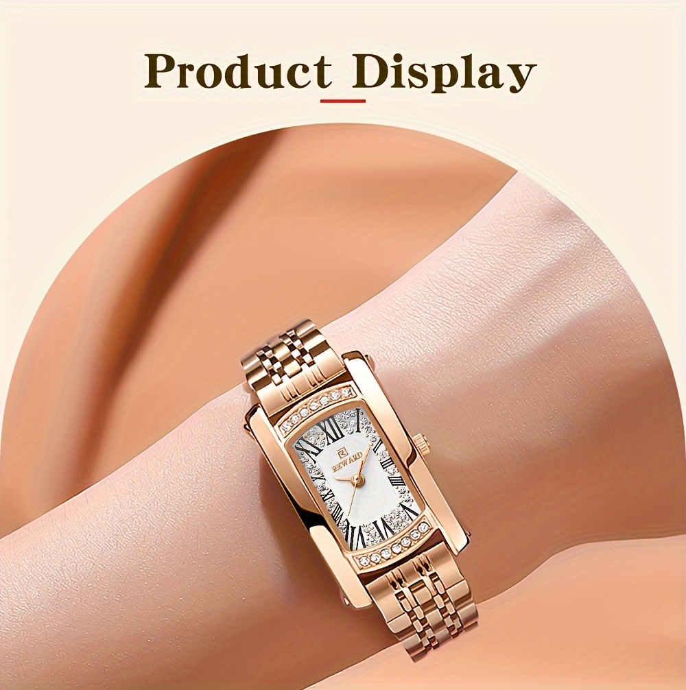 REWARD Women'S Quartz Watch - Japanese Movement, Stainless Steel Band, Glitter Accents, Tonneau Case, Digital Display, Scratch-Resistant Mineral Glass, Elegant Casual Style Wristwatch