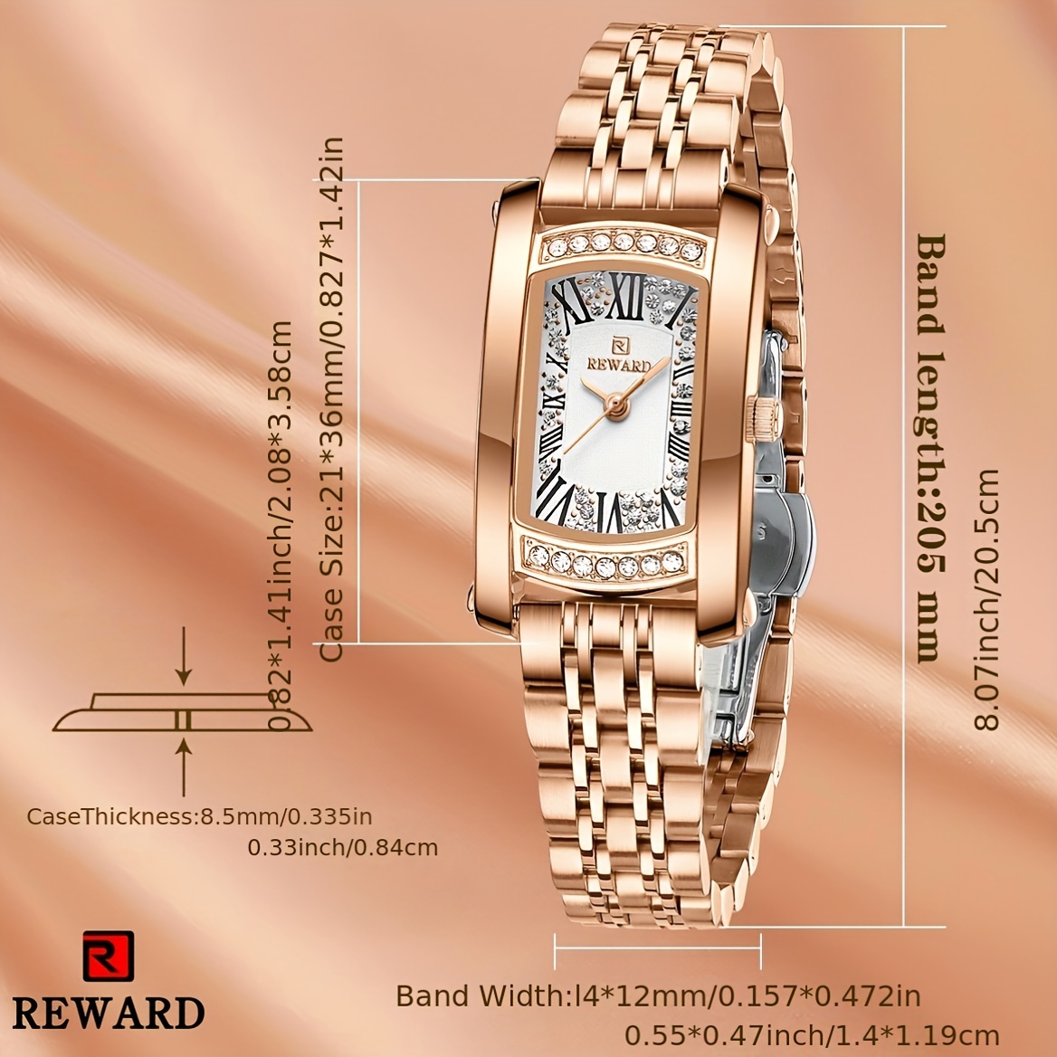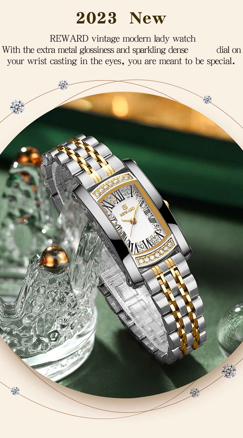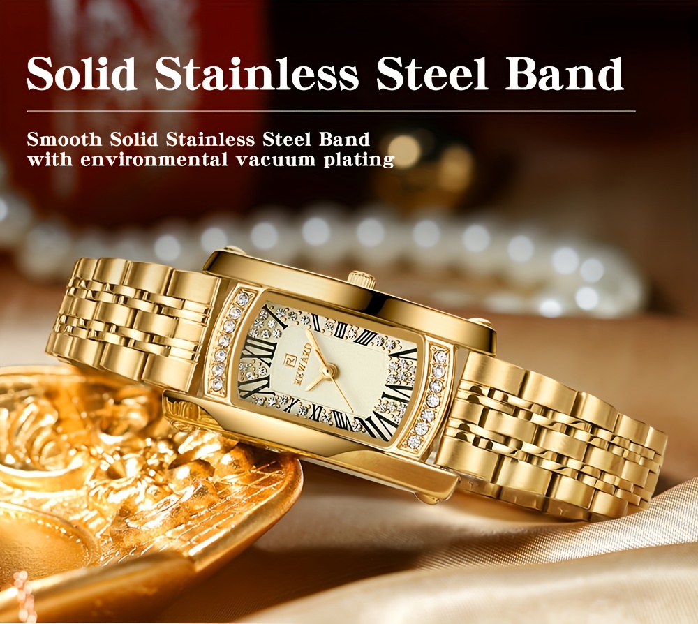 REWARD Women'S Quartz Watch - Japanese Movement, Stainless Steel Band, Glitter Accents, Tonneau Case, Digital Display, Scratch-Resistant Mineral Glass, Elegant Casual Style Wristwatch
